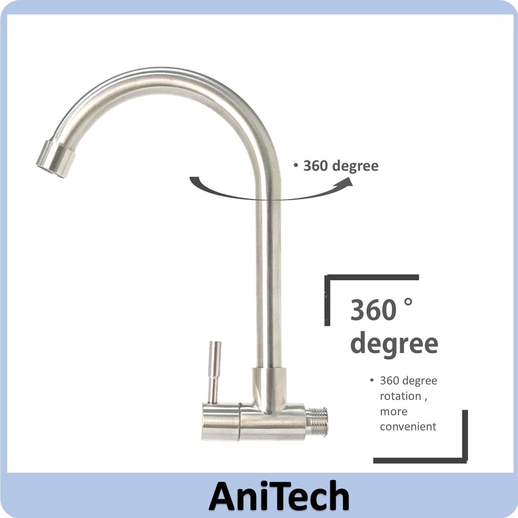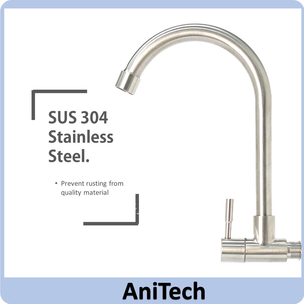 ANITECH Stainless Steel (SUS 304) Kitchen Faucet Wall / Pillar Mounted Sink Tap Kepala Paip