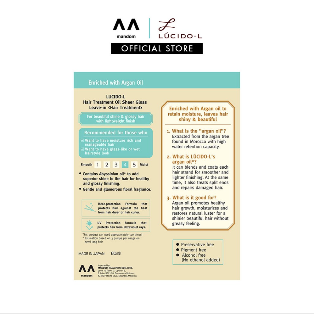 LUCIDO-L Argan Rich Hair Repair Treatment Oil Sheer Gloss 60ml (argan hair, argan oil, hair treatment)