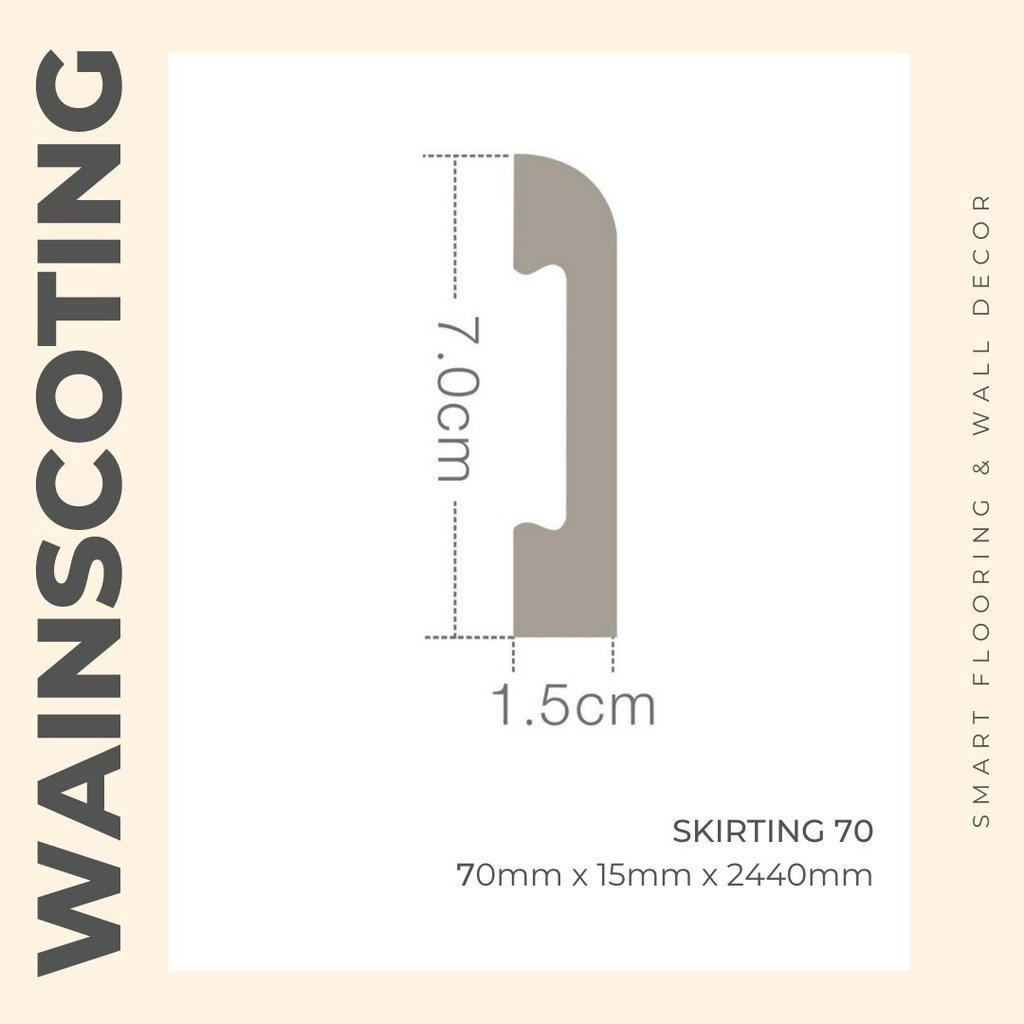 Wainscoting DIY 100% Waterproof - Wall Skirting 70mm (8ft Long) - Solid White - Paintable