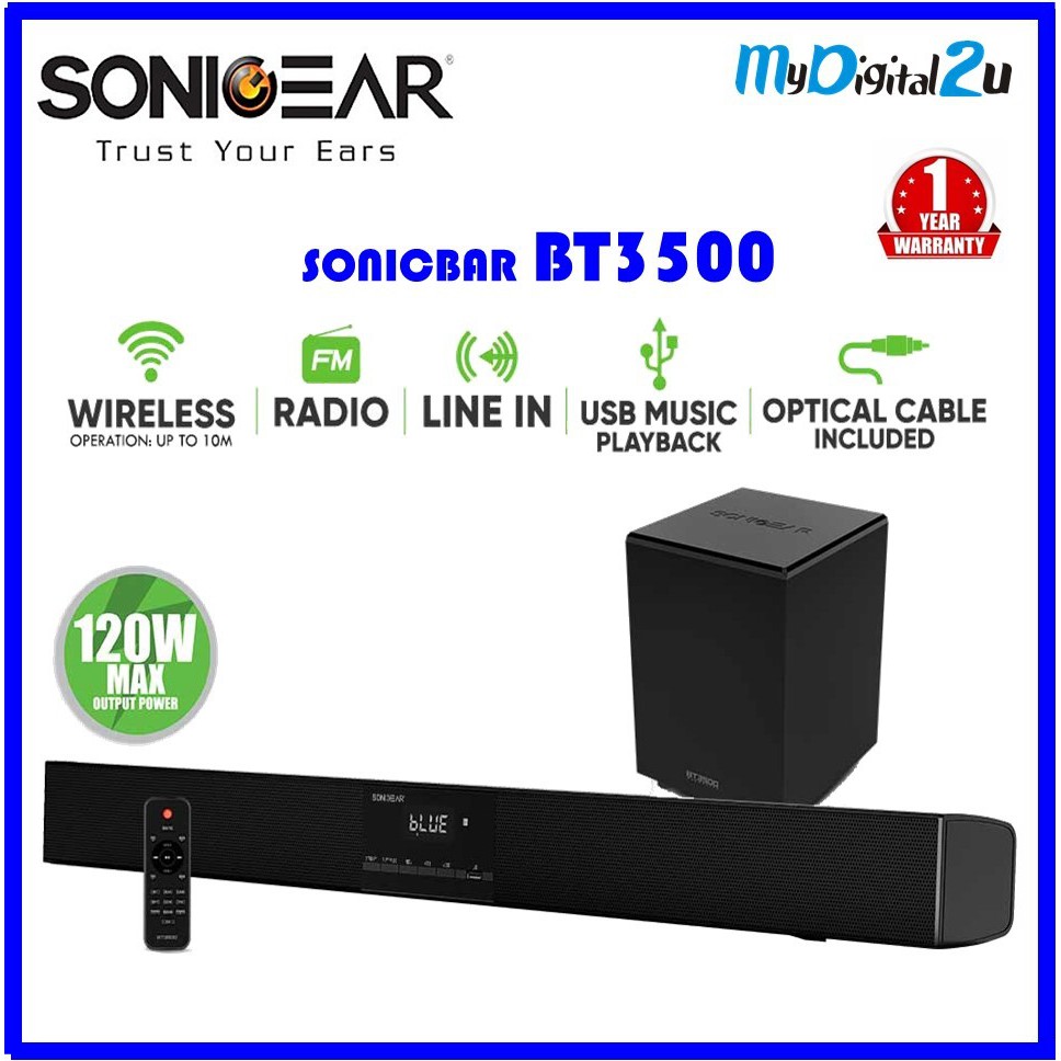 SonicGear SonicBar BT3500 Soundbar & Subwoofer I Optical Line-In I Coaxial Line-In I Bluetooth 5.0 I FM Radio