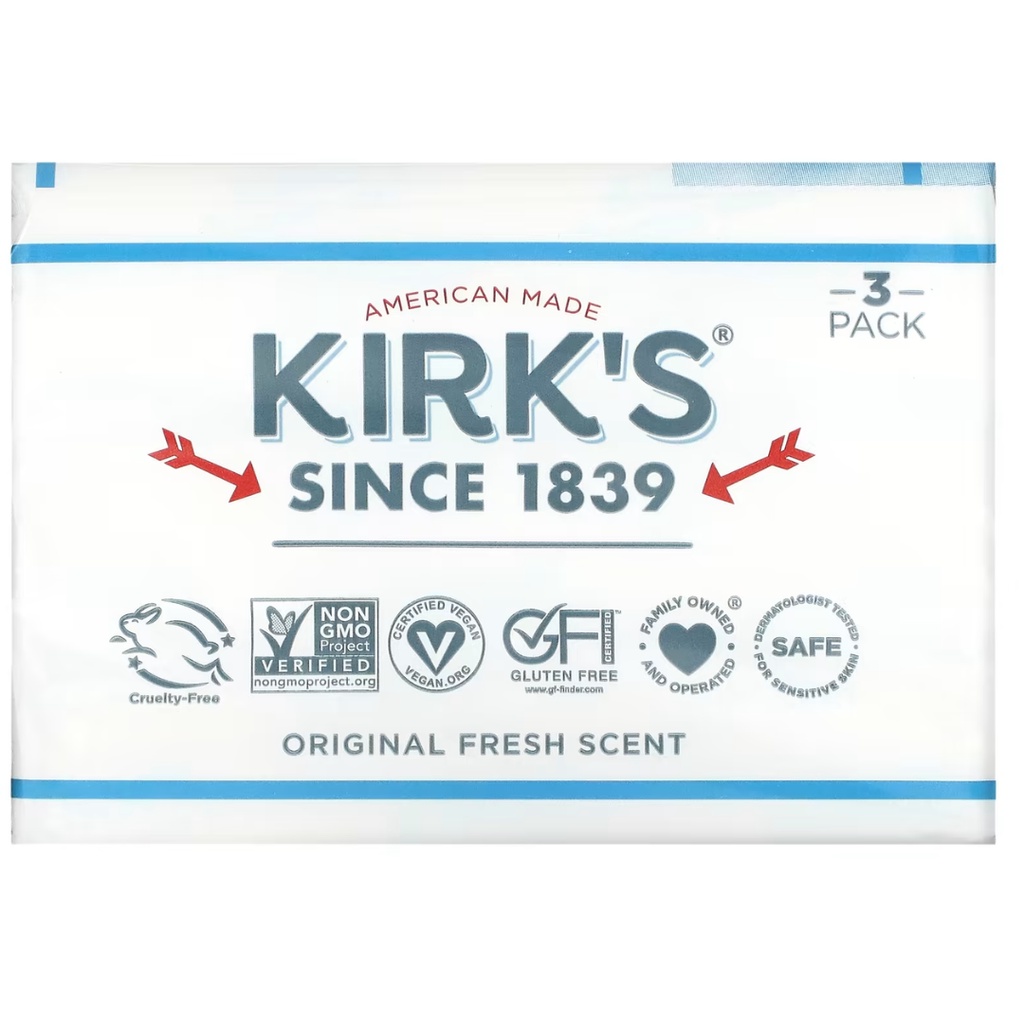 Kirks, 100% Premium Coconut Oil Gentle Castile Soap, Original Fresh Scent, 3 Bars, 4 oz (113 g) Each