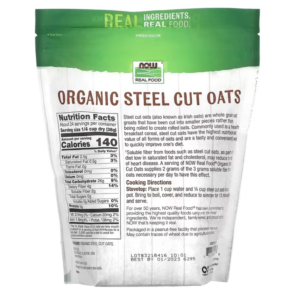 Now Foods, Real Food, Organic Steel Cut Oats, 2 lbs (907 g)