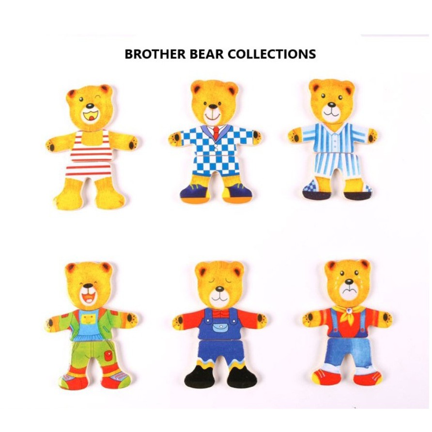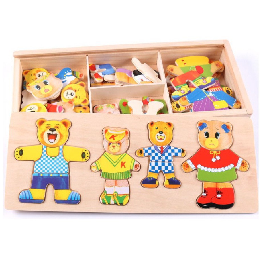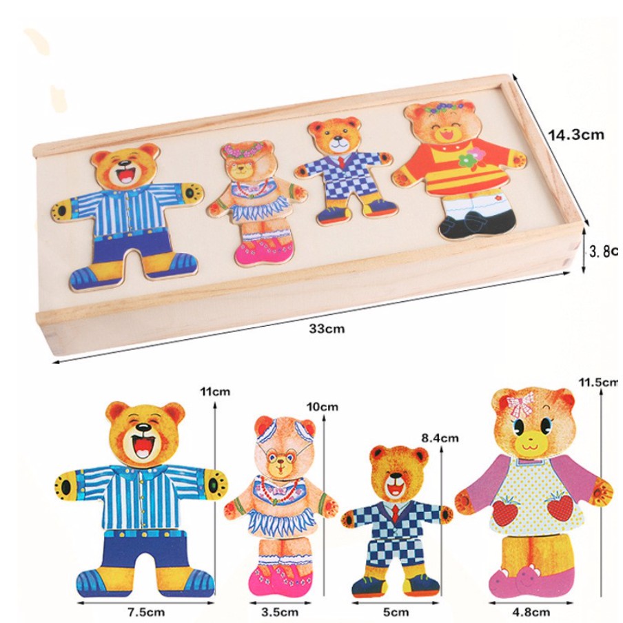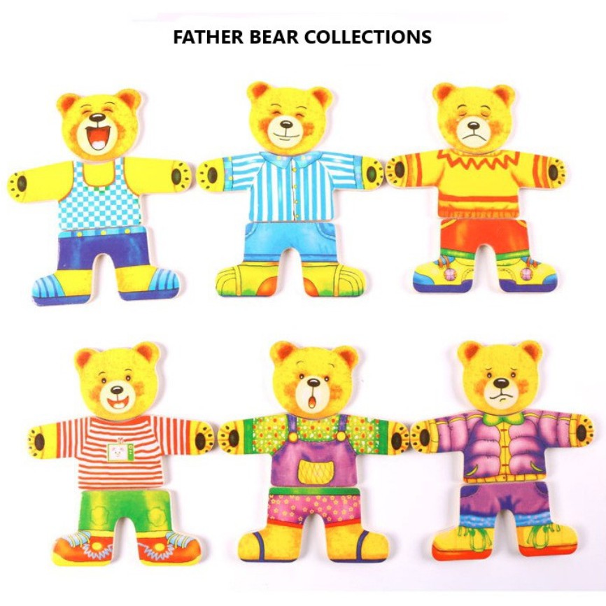 [72pcs] Dress-Up Kids Puzzle Mix 'n Match Wooden Bear Family with Storage Case Change Clothes