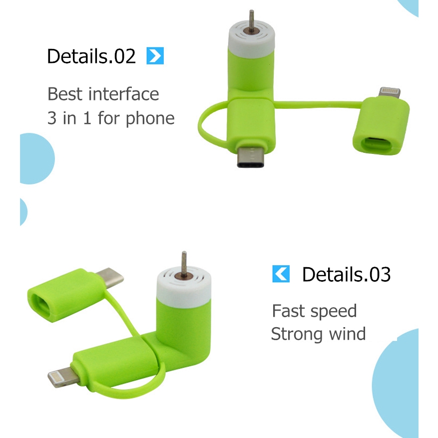 3 in 1 USB Fan Portable Travel Portable Phone Mini Fan For IPhone Ipad USB Gadgets For Android Micro Type