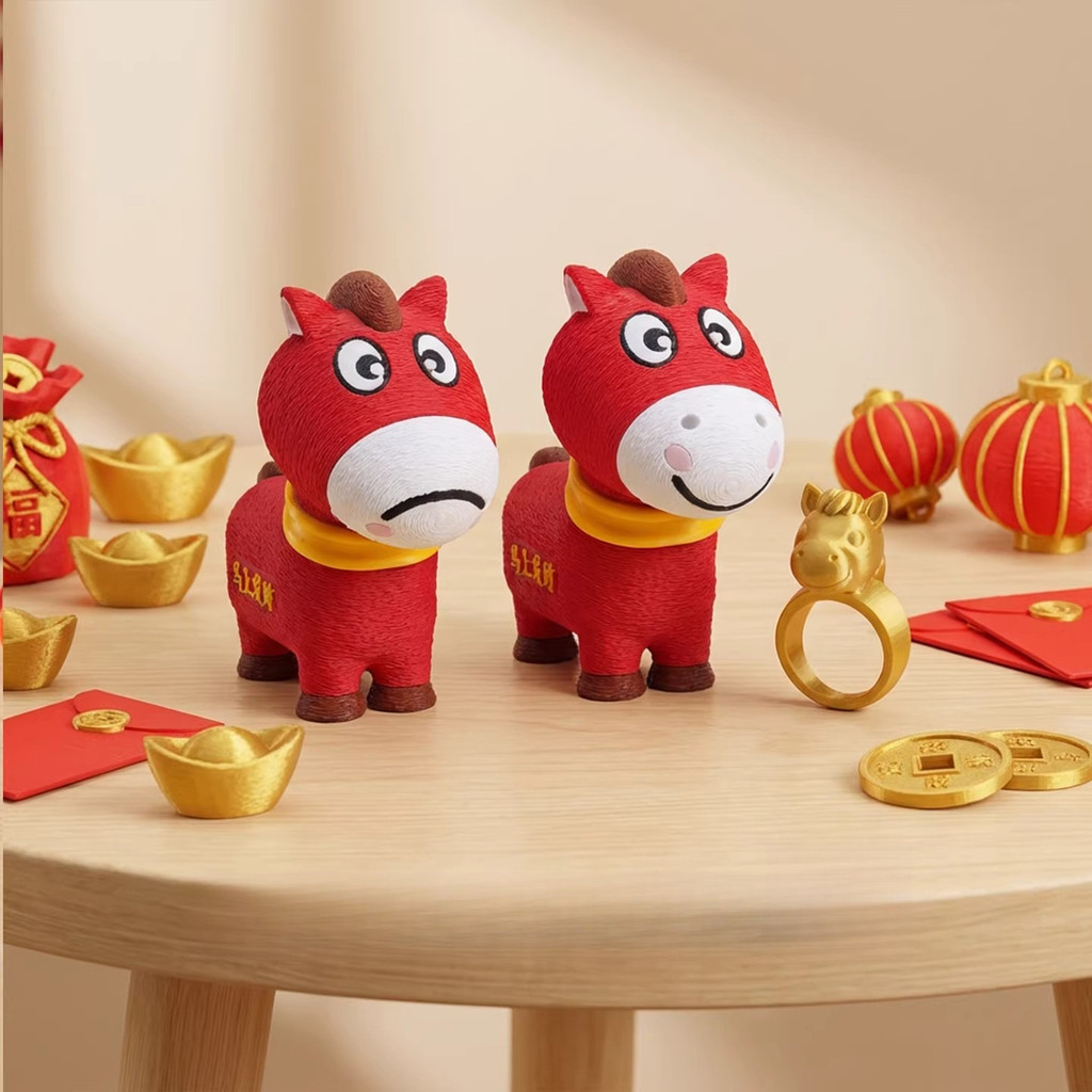 Crying Horse 3D Printed Pony Ornament 2026 Horse Year Mascot Rotating Mouth Expression Horse Doll Kids New Year Gift