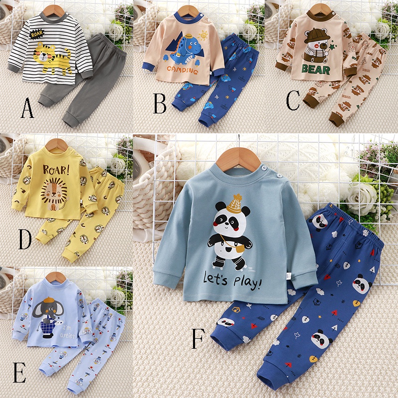 Baby Boys Girs 100% Cotton Underwear Set Kids Cartoon Pajamas Pants Children Casual Long Sleeve Shirts Pants