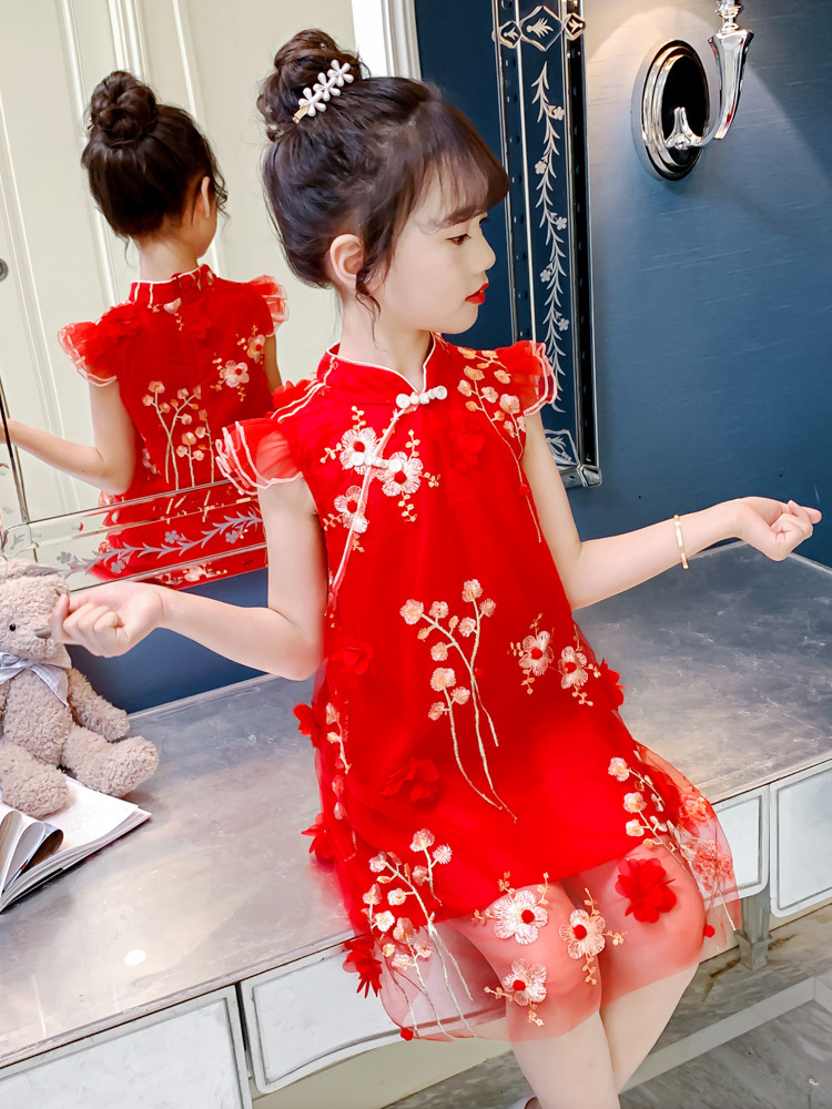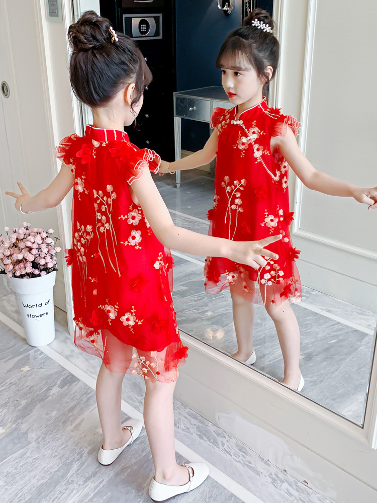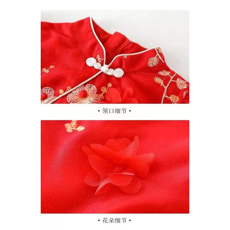 CNY Girls Flower Cheongsam New Year Summer Dress Summer Chinese Style Floral Princess Cheongsam