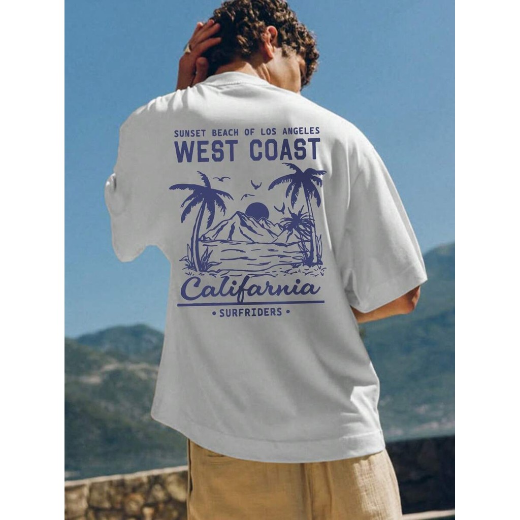 Men's Sunset Beach Print Short Sleeve T-Shirt, Comfortable And Breathable, Suitable For Summer Wear,