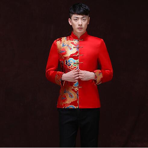 唐裝男 漢服 男 cheongsam shirt men baju cina lelaki tang suit hanfumen samfuXiuhe Clothing Men's Clothing Chinese Wedding Groom Clothing Stand-Up Collar Tang Suit Top Colorful Golden Dragon Wedding Toasting Dress Ceremonial
