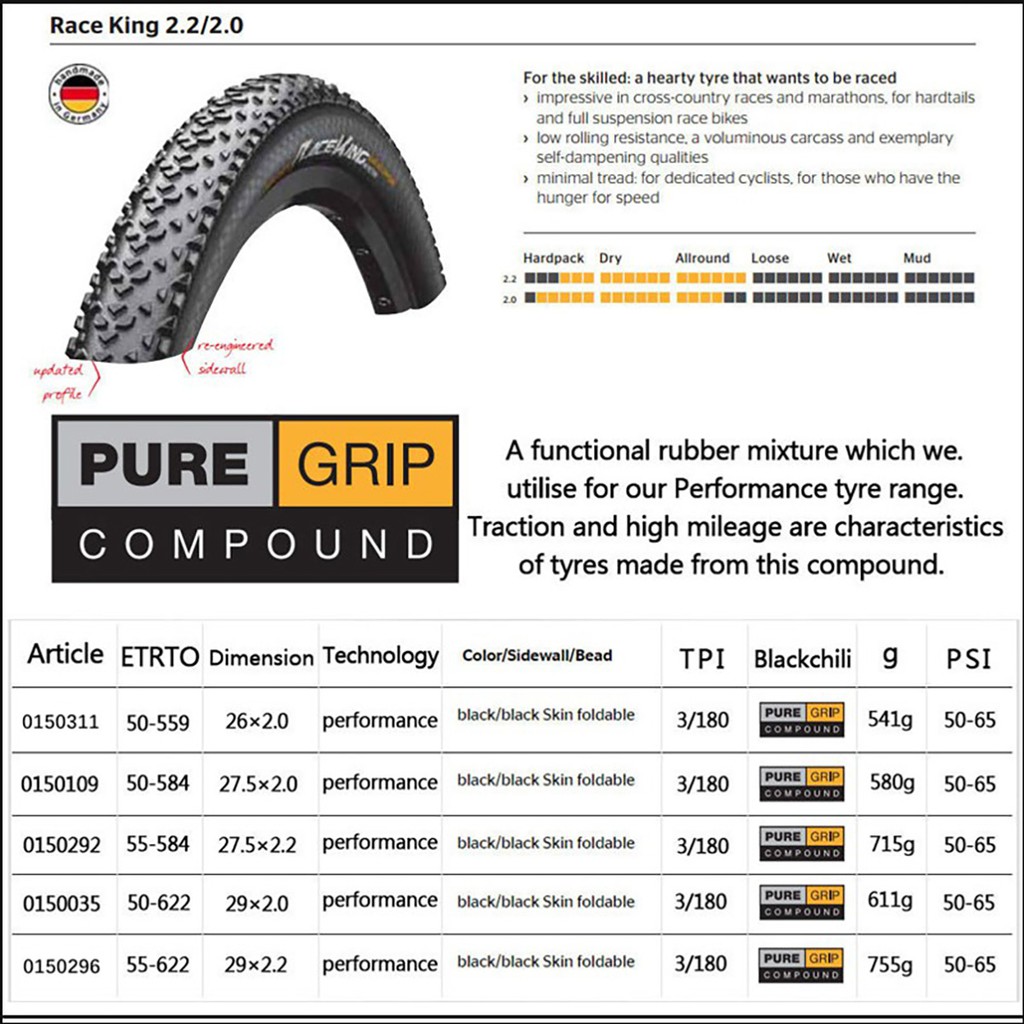 Continental tyre RACE KING MTB Mountain Bike Tyre for bicycle mounting MTB size 26x2.0 27.5x2.0 29x2.0 bicycle parts