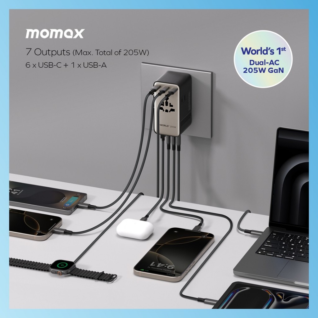 Momax 1-World² 205W 7-Port Dual AC Travel Adapter