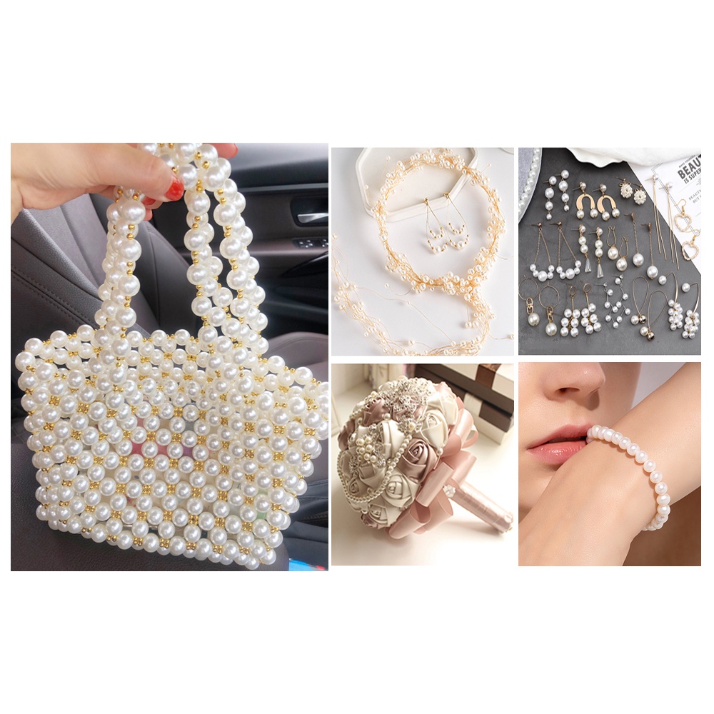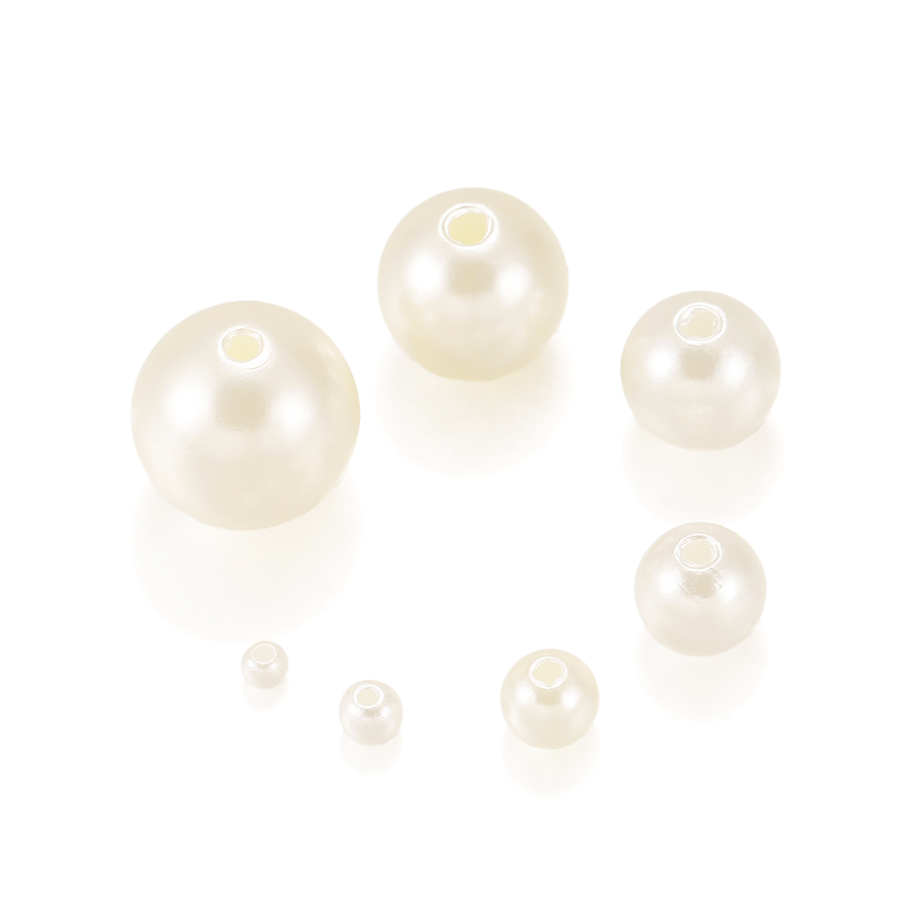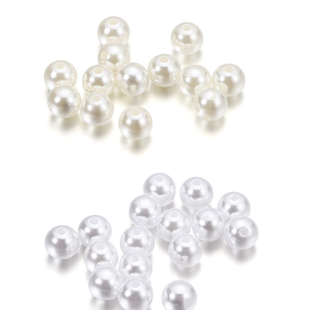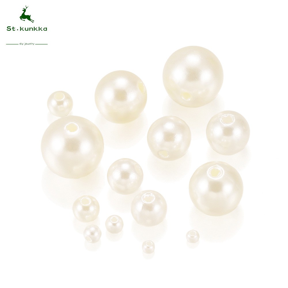 St.kunkka 400 pcs Straight Holes Acrylic ABS Imitation White Pearl Beige Bracelet Round Beads For DIY Craft Jewelry Making Supplies