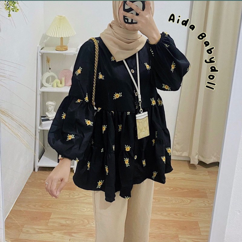 AIDA BLOUSE BABYDOLL/ BLOUSE FLORAL OVERSIZE FLOWER MOTIF BLOUSE TOP