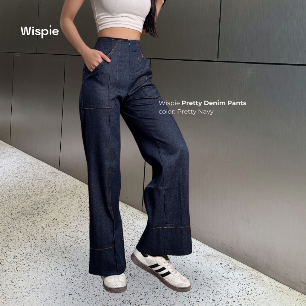 Wispie Denim Pants | Women's High Waist Loose Straight fit Denim Pants Seluar Jeans Perempuan