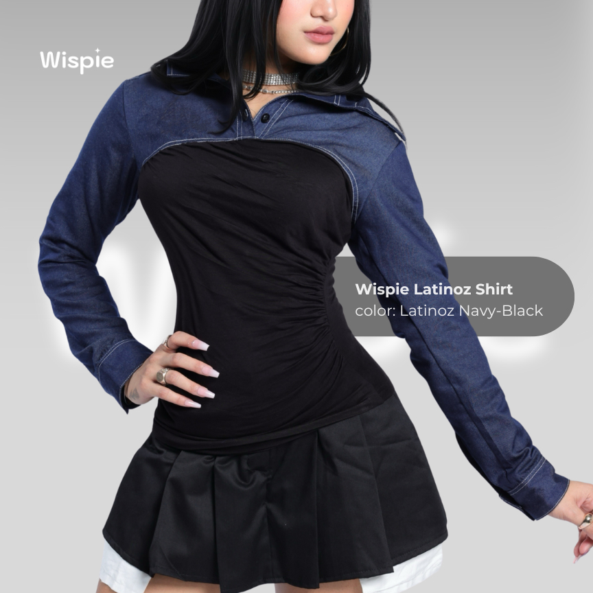 KEMEJA Wispie Latinoz | Draping Women's Stretch Spandex Denim Shirt Blouse Women