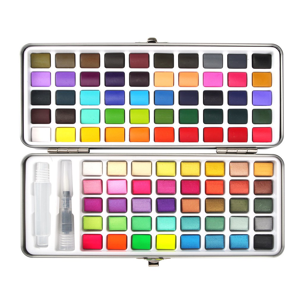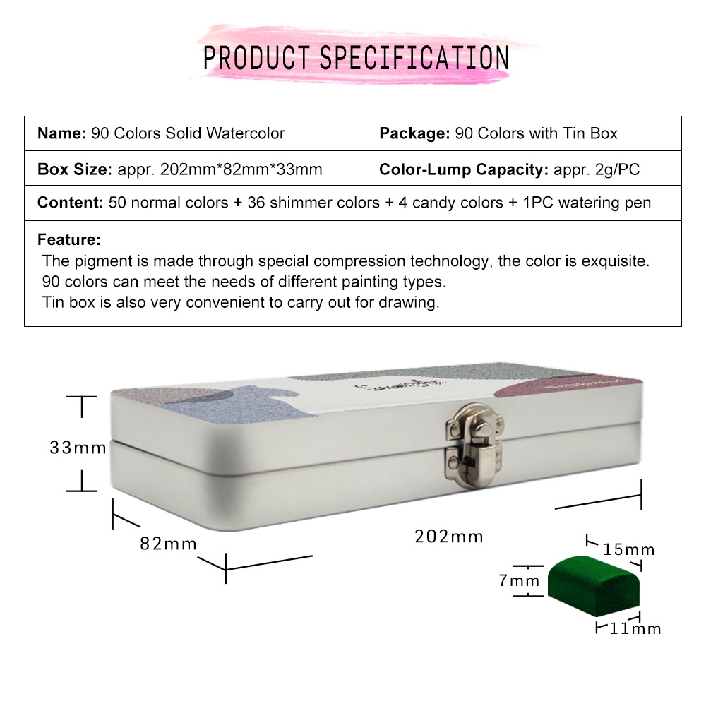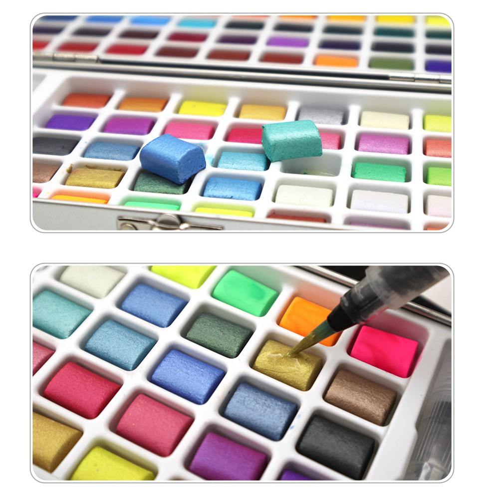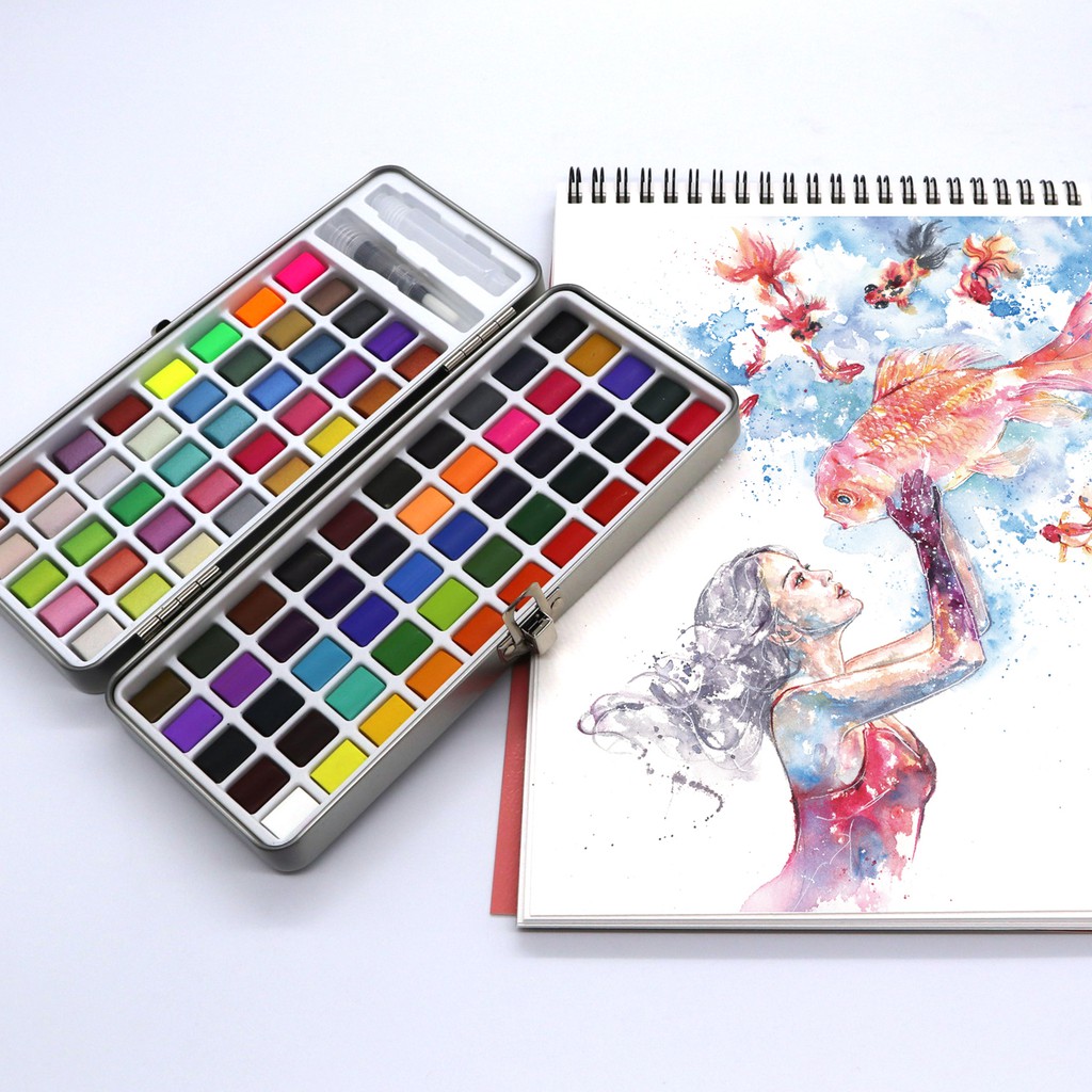 SeamiArt 90 Colors Solid Watercolor Set With Tin box Water Brush Pen (1 Pcs)