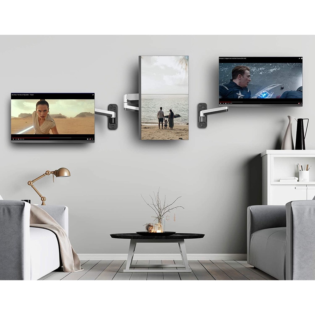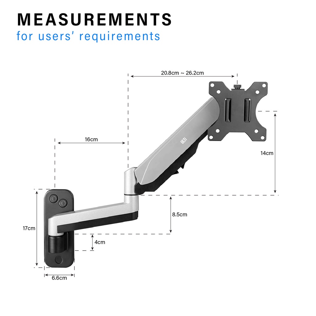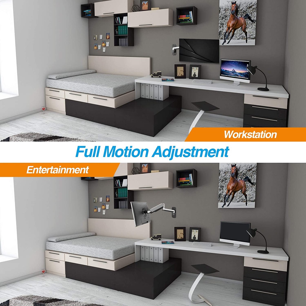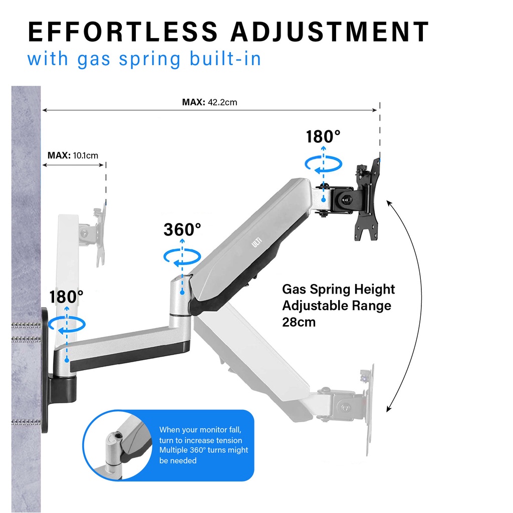 ULTi Stealth Monitor Wall Mount, Gas Spring Built-in Full Motion Arm for Flat & Curved Screen, VESA, Cable Management