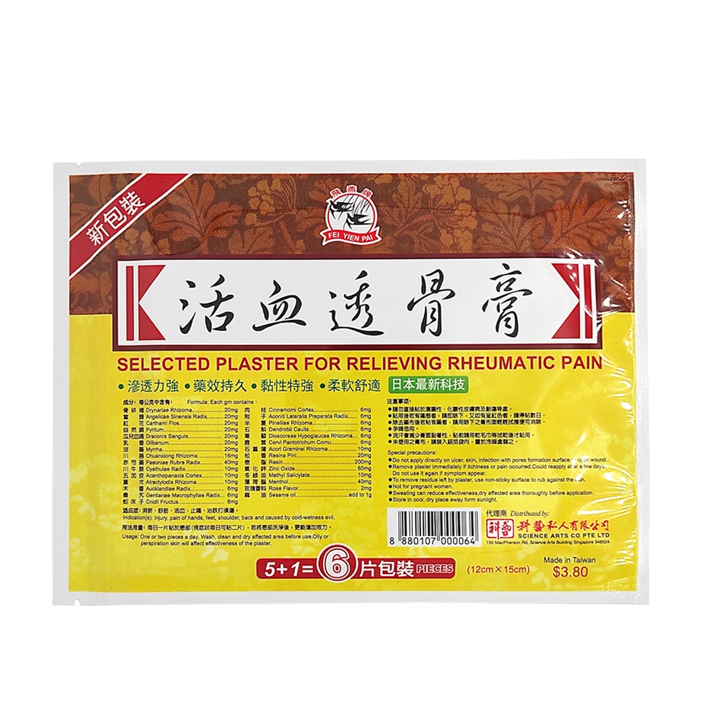 (3 PACK) Fei Yien Pai Selected Plaster for Relieving Rheumatic Pain (6 Pcs)