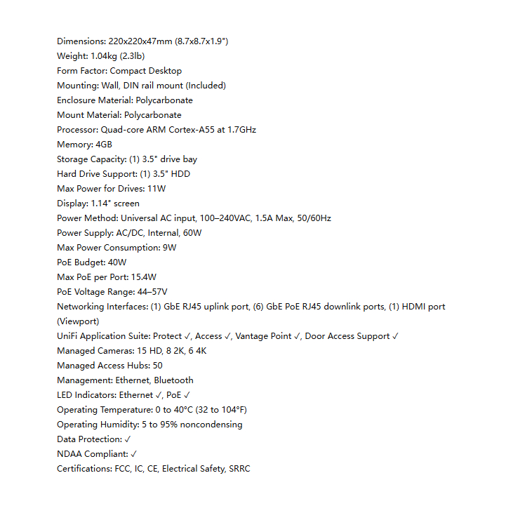 Ubiquiti UniFi Network Video Recorder UNVR-Instant – 6 Port PoE NVR with HDD Support Ubiquiti Switch