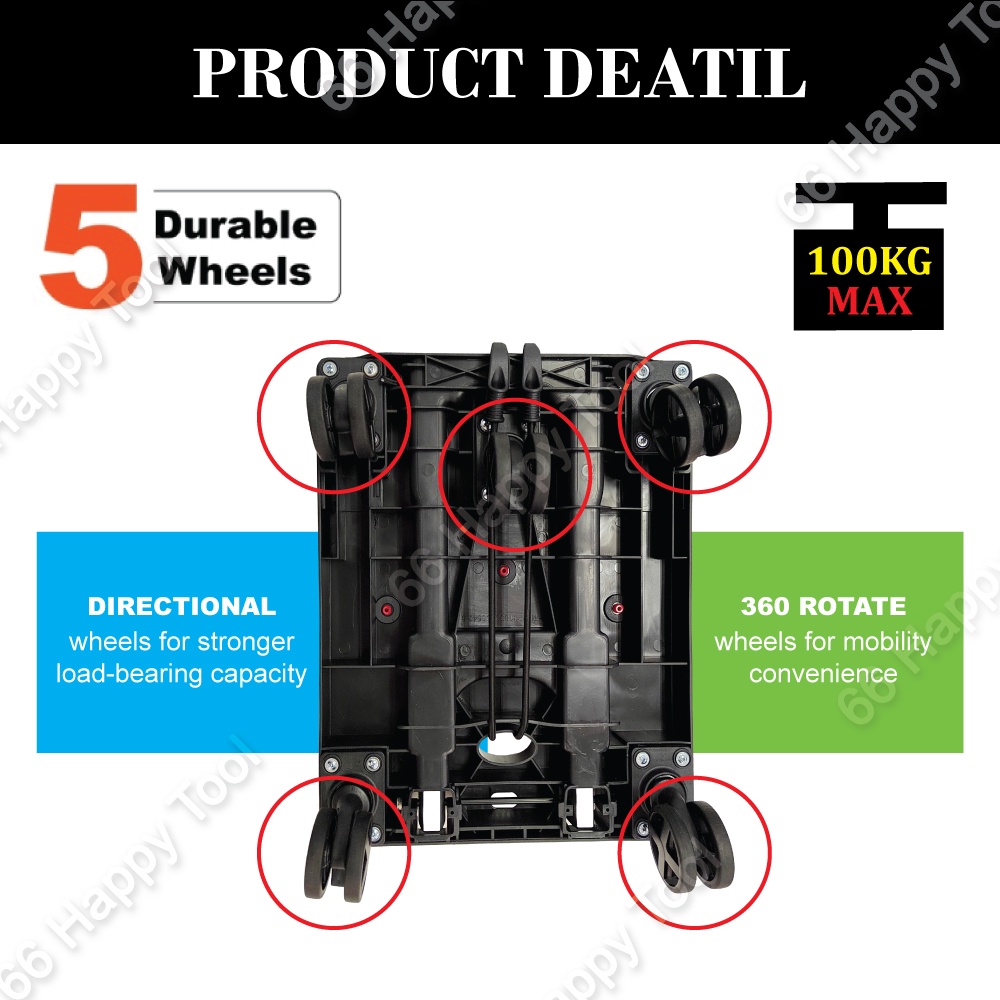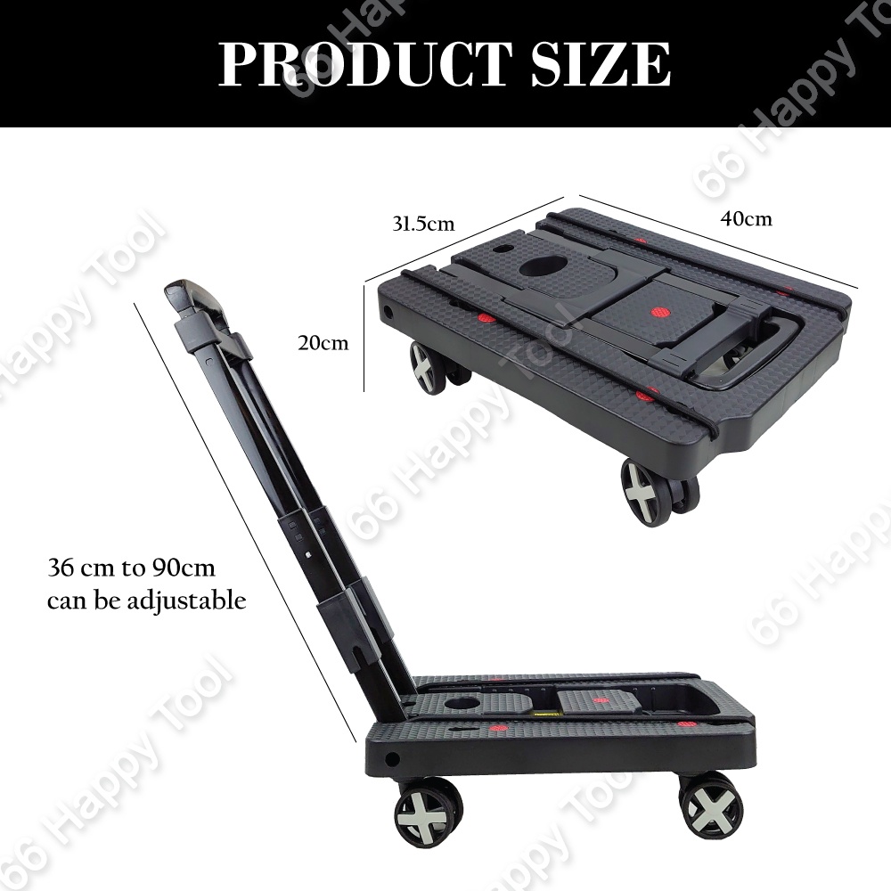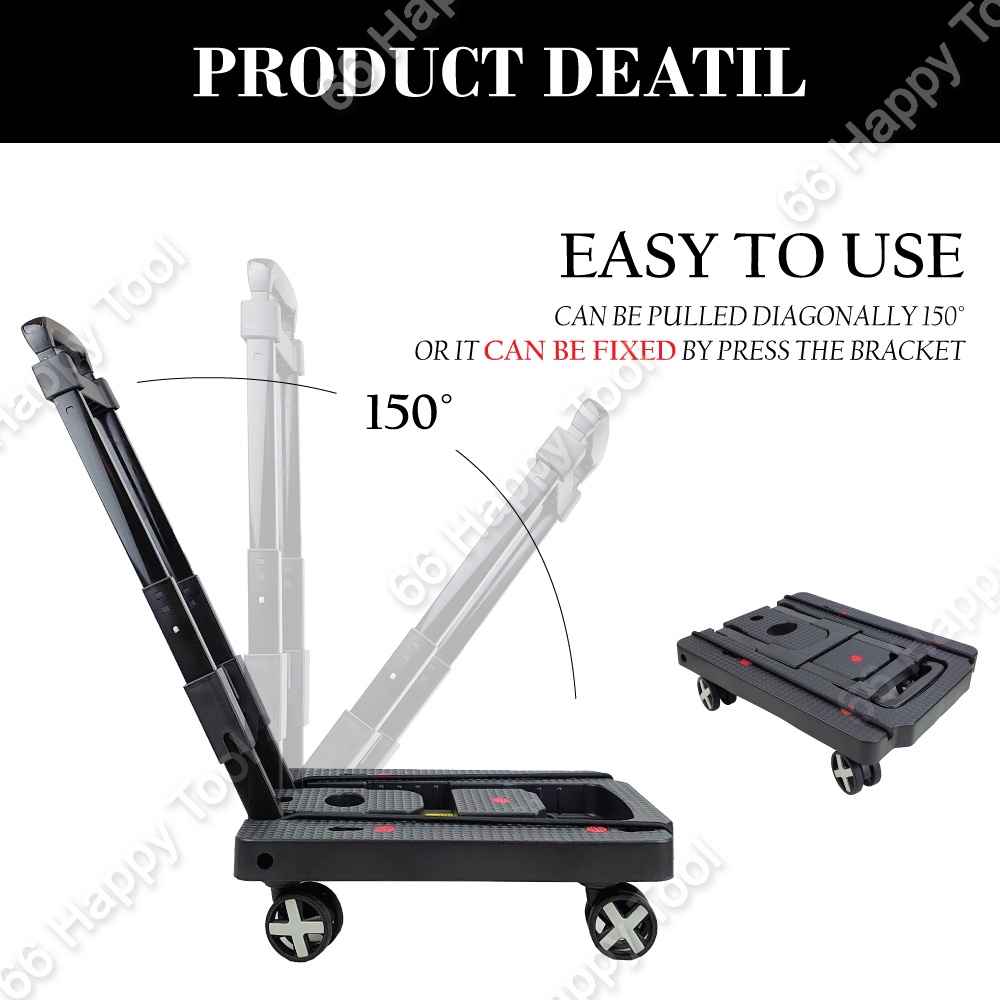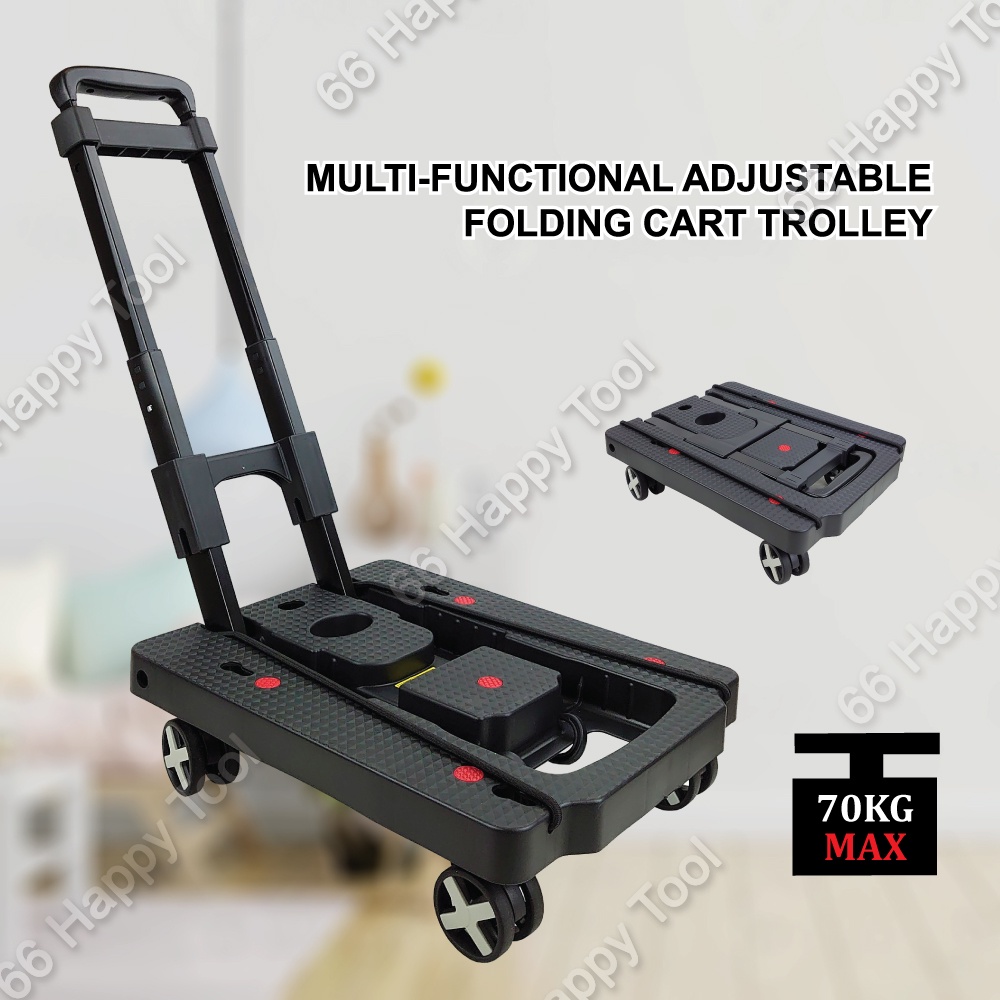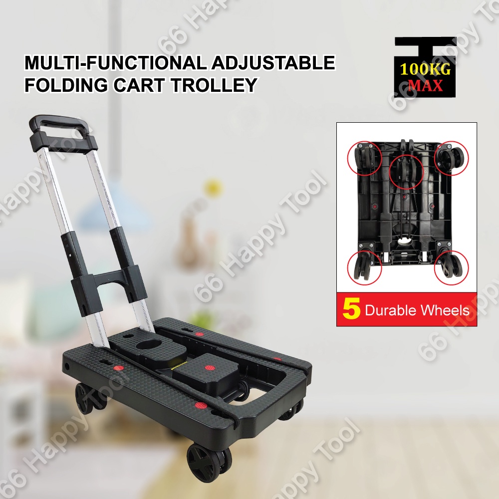 Multi-functional Folding Cart Trolley with Hook Rope 5 Wheel Adjustable Trolley Max Load 100kg Lightweight Hand Truck