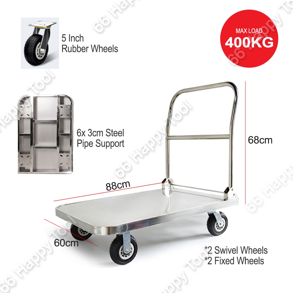 Heavy Duty Stainless Steel Foldable Platform Hand Truck Trolley Durable Max Load 250kg 400kg 500kg 4 Wheel Cart Troli