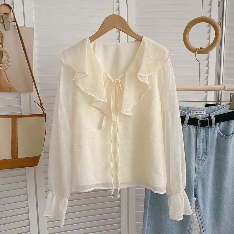 Mona~Solid Color Tied Up Long Sleeves Korean Version Sweet Shirt