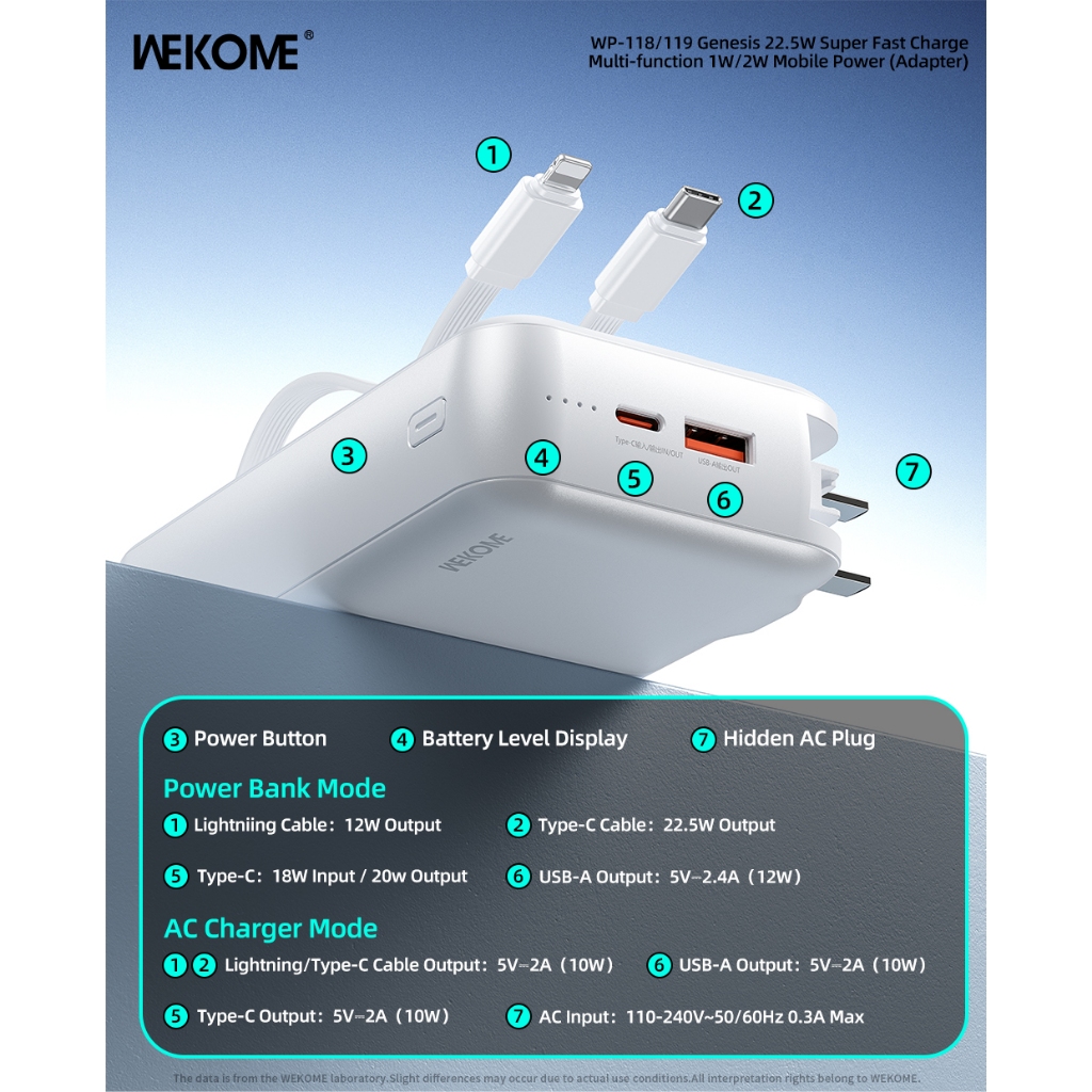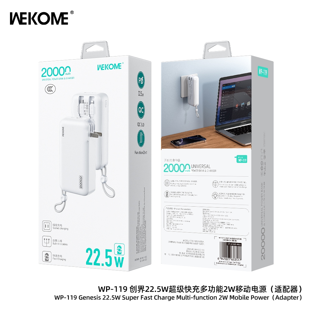 ❗ CCC CERTIFIED ❗🔥 WEKOME WP-119 20000MAH 22.5W SUPER FAST CHARGING POWER BANK 20KMAH WITH CABLE 🔥