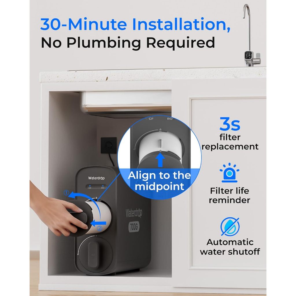 Waterdrop G5P700 & G5P700A Reverse Osmosis Water Filter, Pure & Alkaline RO System, NSF/ANSI 372 Certified, 700G Fast Flow, 7 Stage RO Filtration, 2:1 Pure to Drain, Smart Faucet