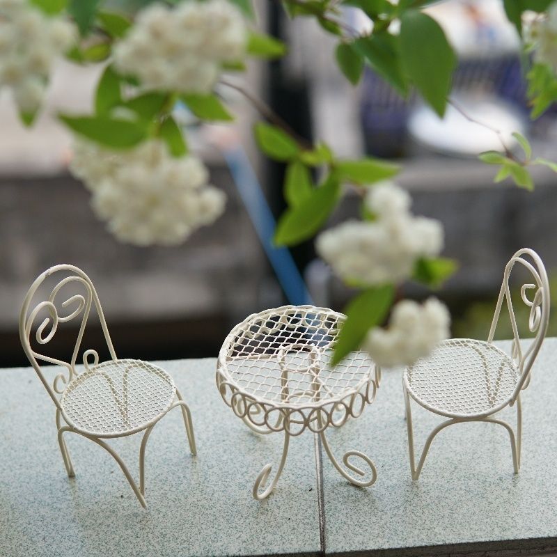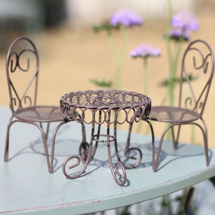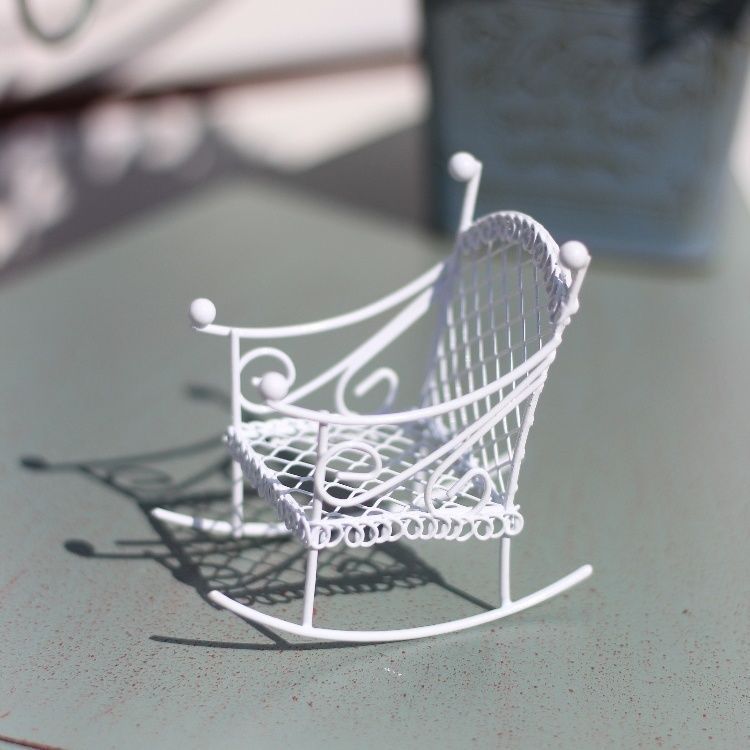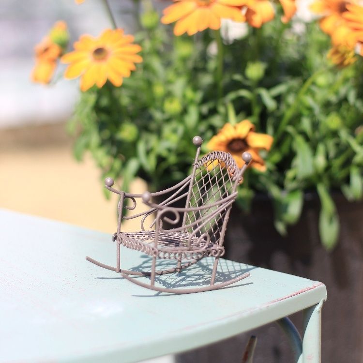 迷你铁艺小桌椅配件花园杂货阳台装饰鸟笼摇椅摆件多肉插微缩家具gnjggf04.my26.3.16