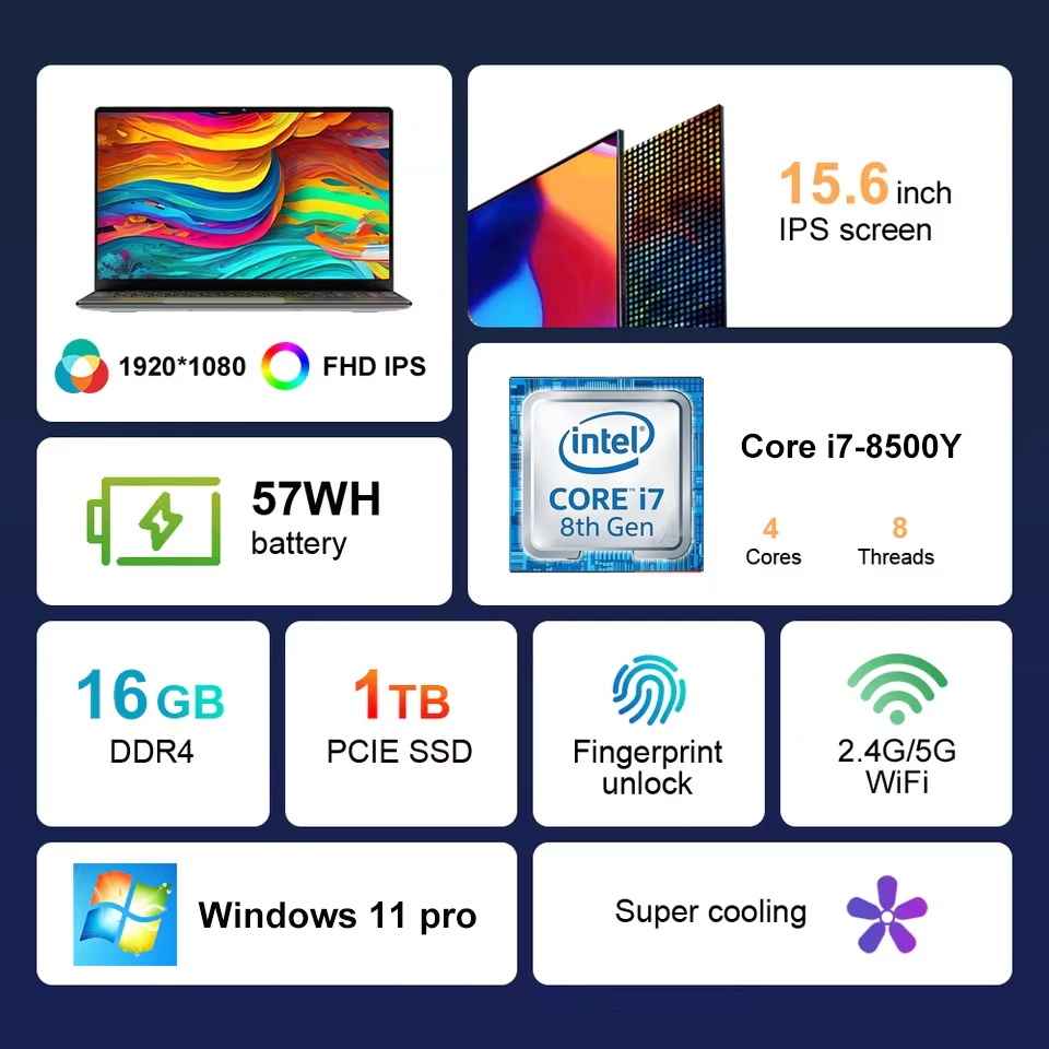 【3-Year Warranty】15.6 " Portable Laptop Computer Intel Core i7 Dual Core 16GB RAM 1TB 2TB SSD Windows 11 Laptop Pc Gamer Notebook Office and study laptops