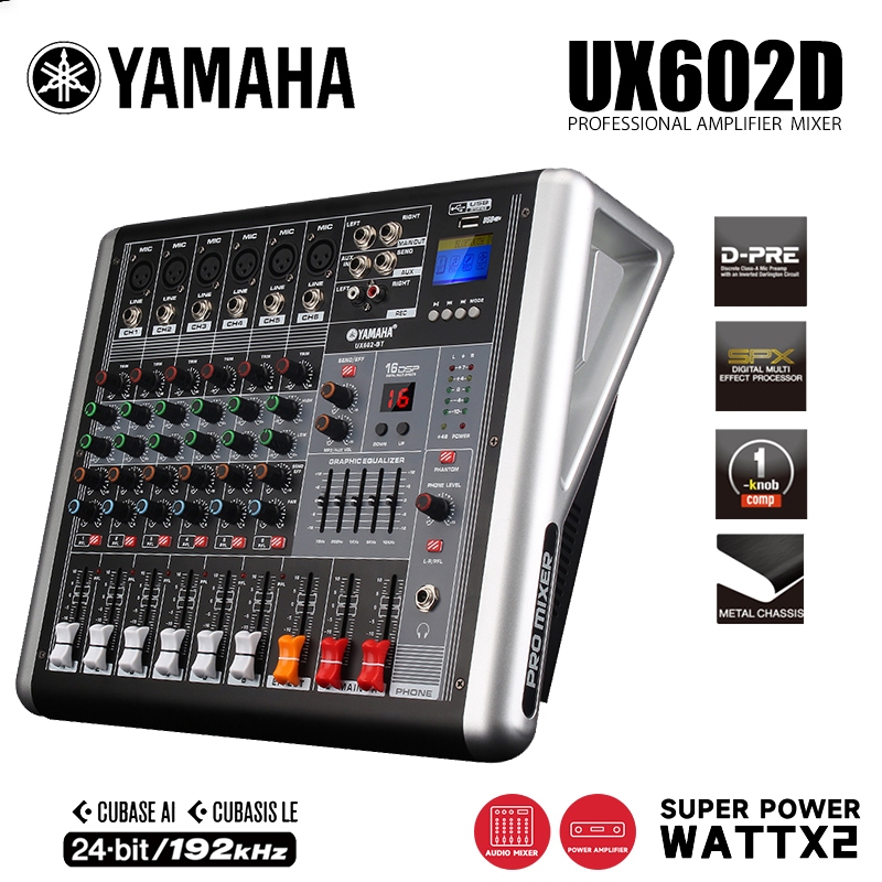 Yamaha UX-402D UX-602D Built-in Power Amplifier Mixer, 6 Channel/8 Channel, Built-in Power Amplifier, with Reverb Effect, Bluetooth Support, USB