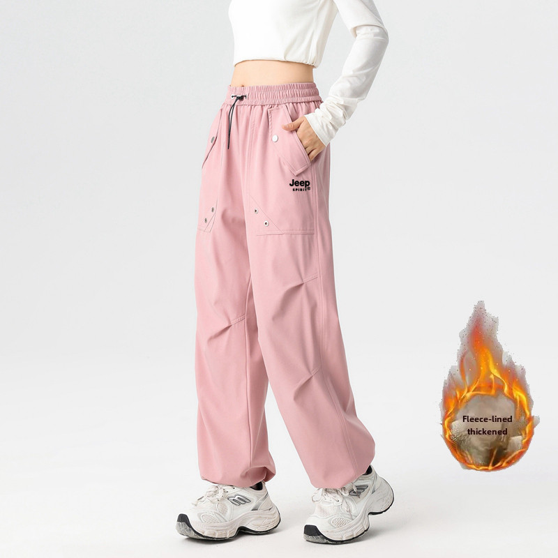 JEEP SPIRIT Waterproof and Windproof Women's Pants Winter Warm Pants In Pink (S-3XL)