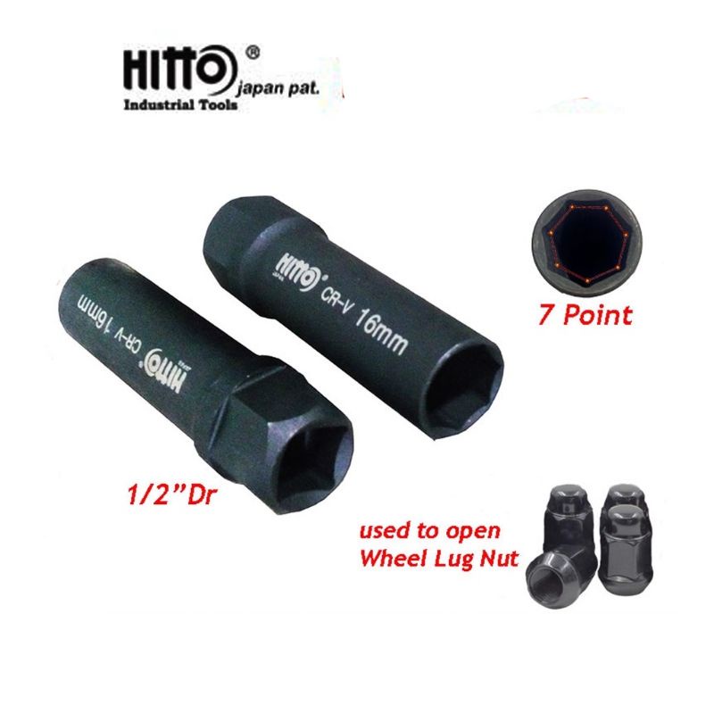 READY STOCK(100%Original)[100%] Hitto Heptagon 7 Point 1/2" Wheel Nut Socket Sport Rim 7pt CR-MO Heavy