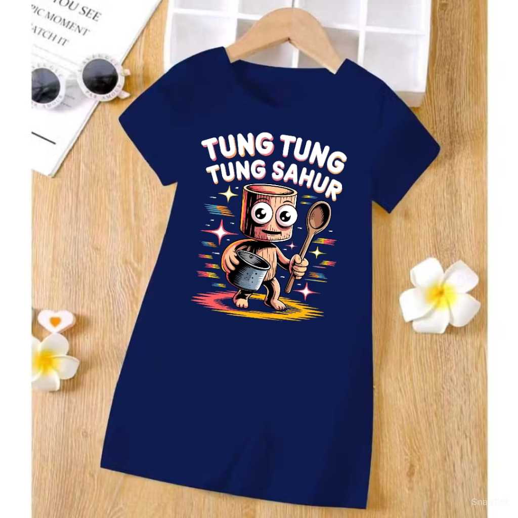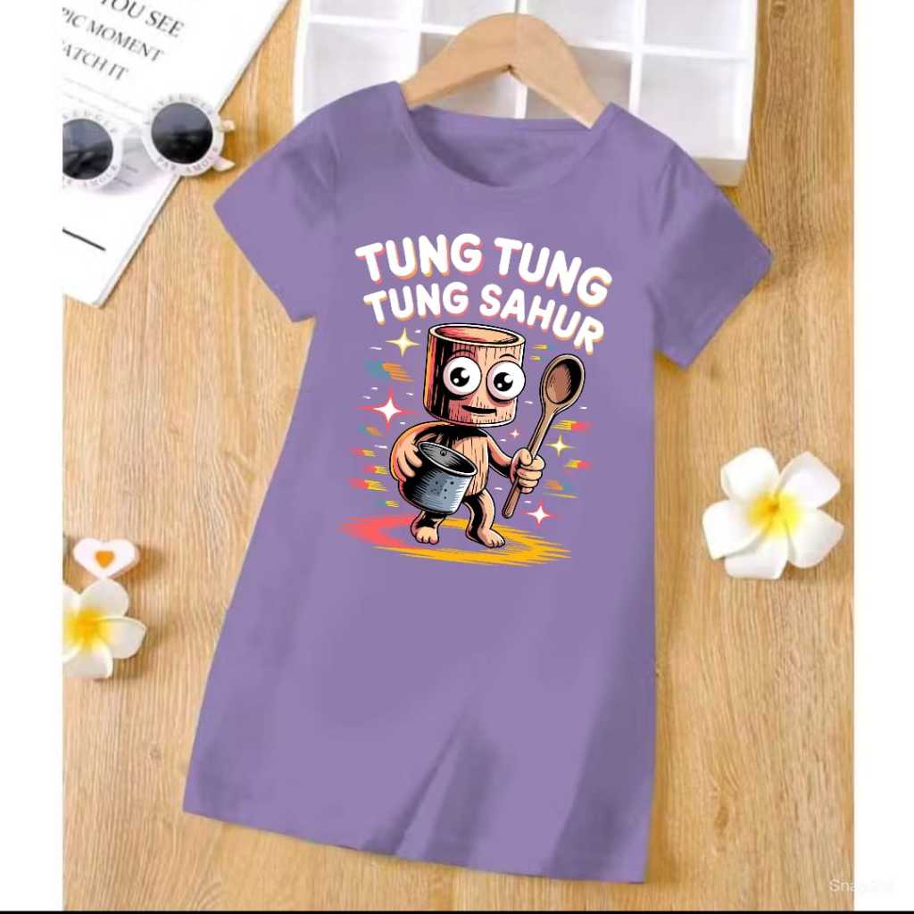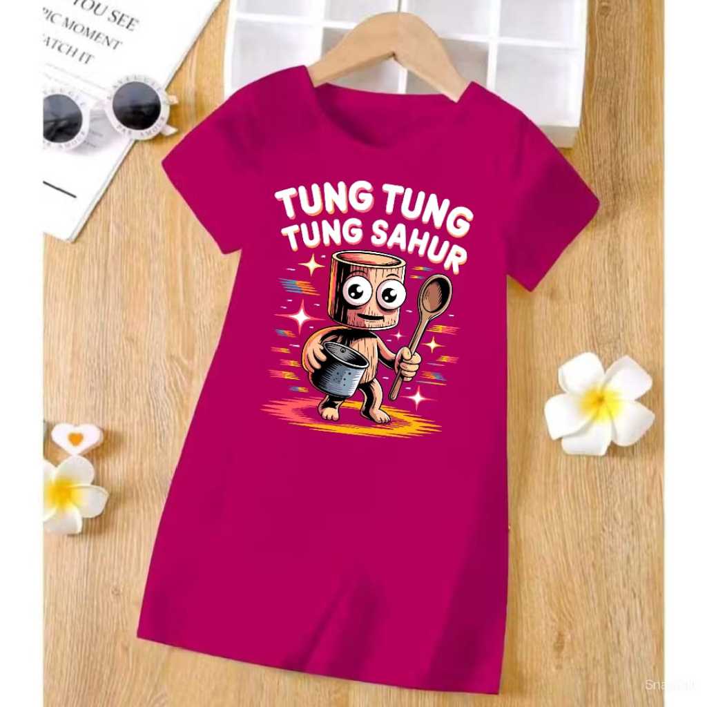 Daster for girls aged 2-13 years, Tung Sahur 3 DTF motif / dress for girls aged 2-13 years, Tung Tung Sahur motif 3 dress budak perempuan