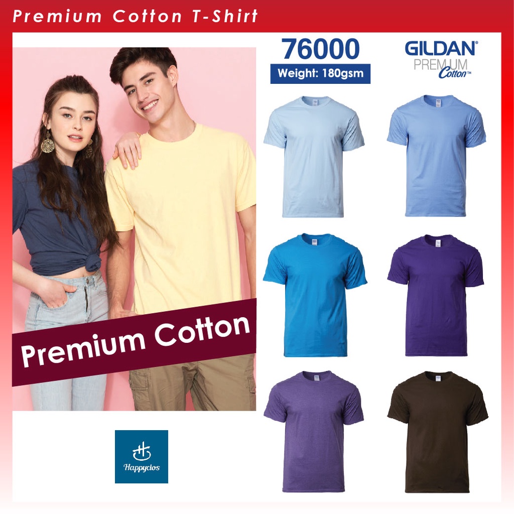 Gildan Premium Cotton Crew Neck T-Shirt-Light Blue/C.Blue/Sapphire/Purple/H.Purple/Chocolate-Gildan 76000
