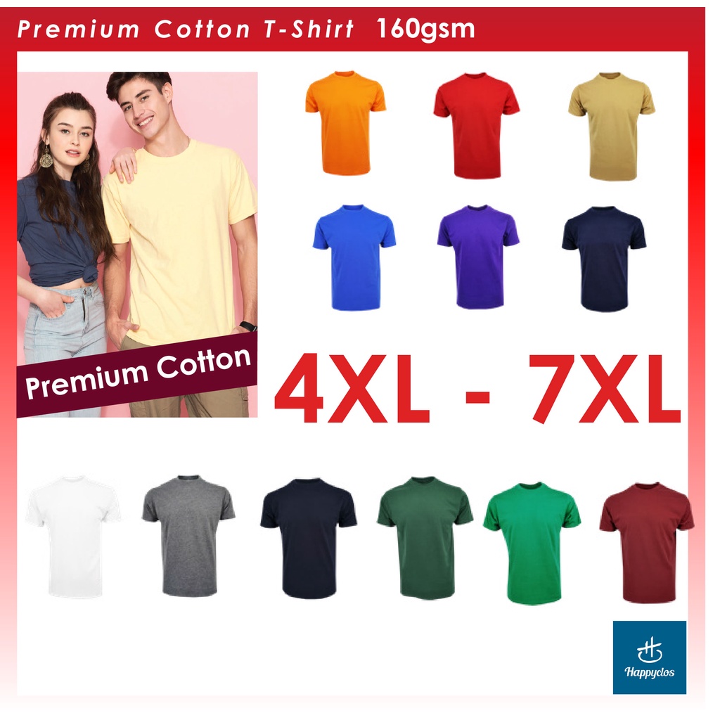 Crew Neck Premium Cotton T-Shirt , Unisex 4XL-7XL - White / Navy Blue / Black / Red / Grey