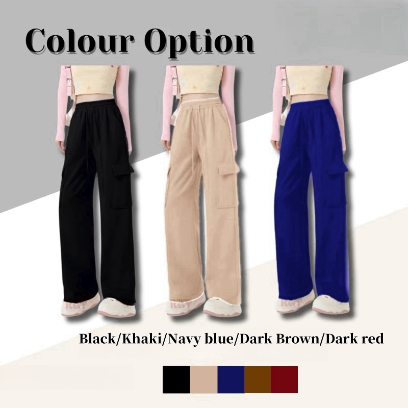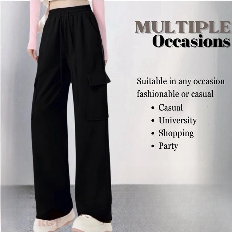 Cargo pants women seluar cargo straight cut pants palazo plus size casual hitam slimming drawstring streetwear women