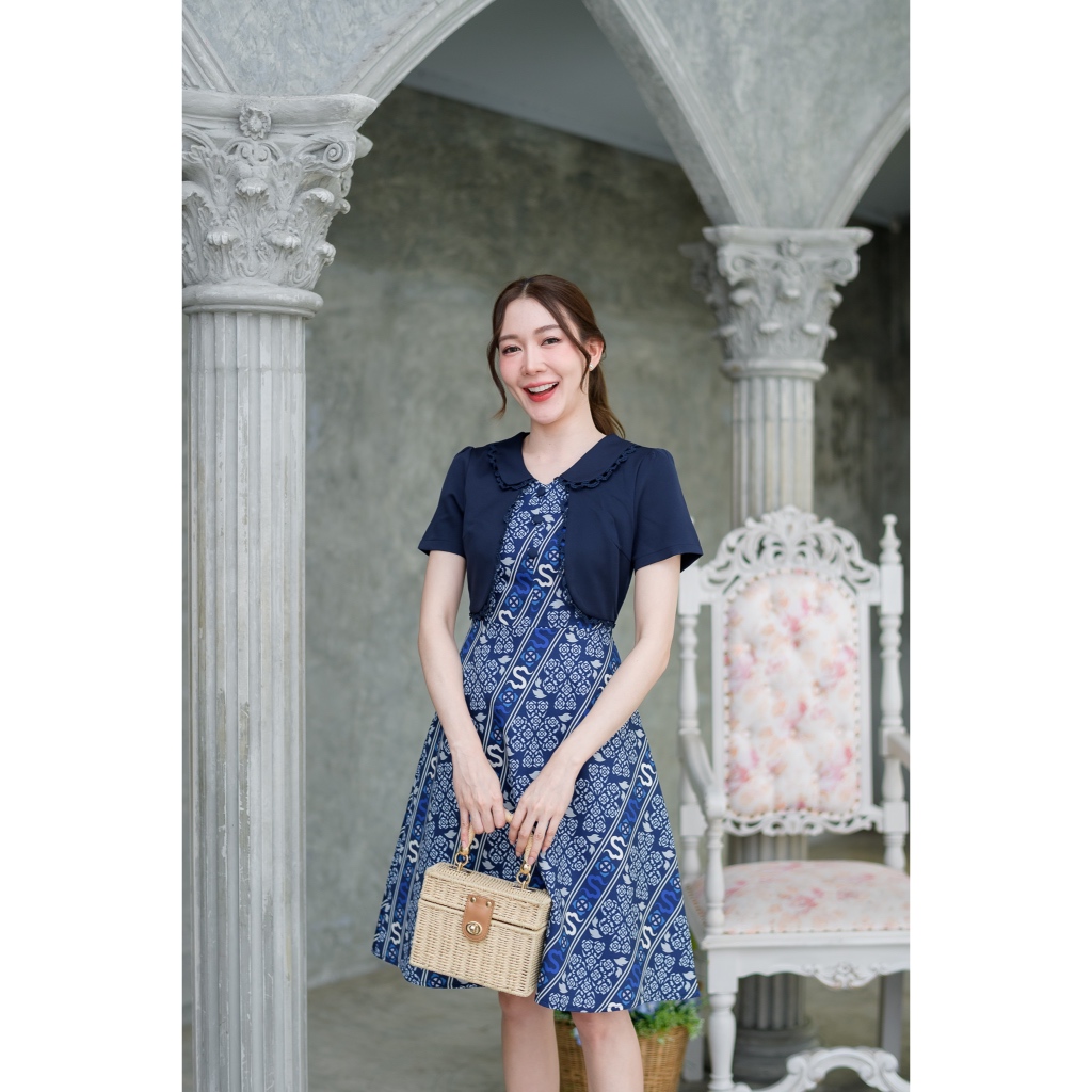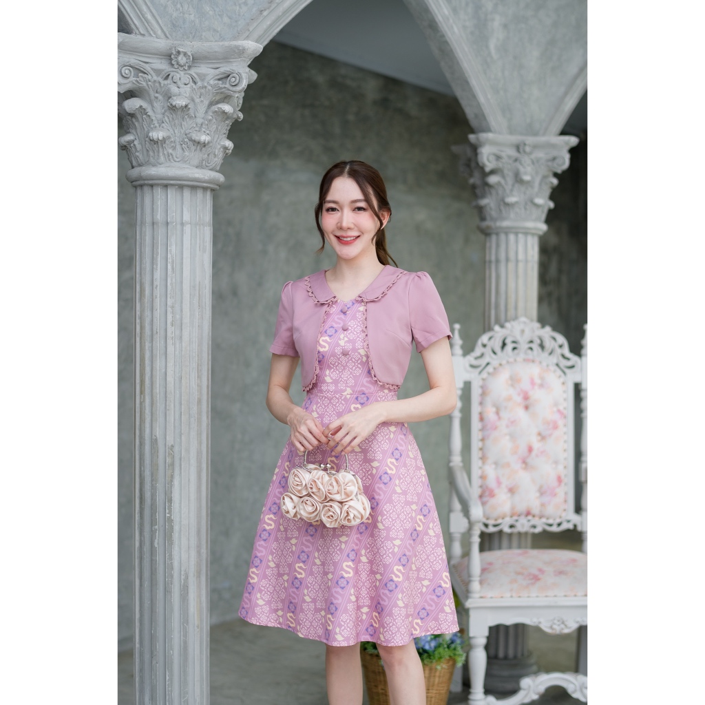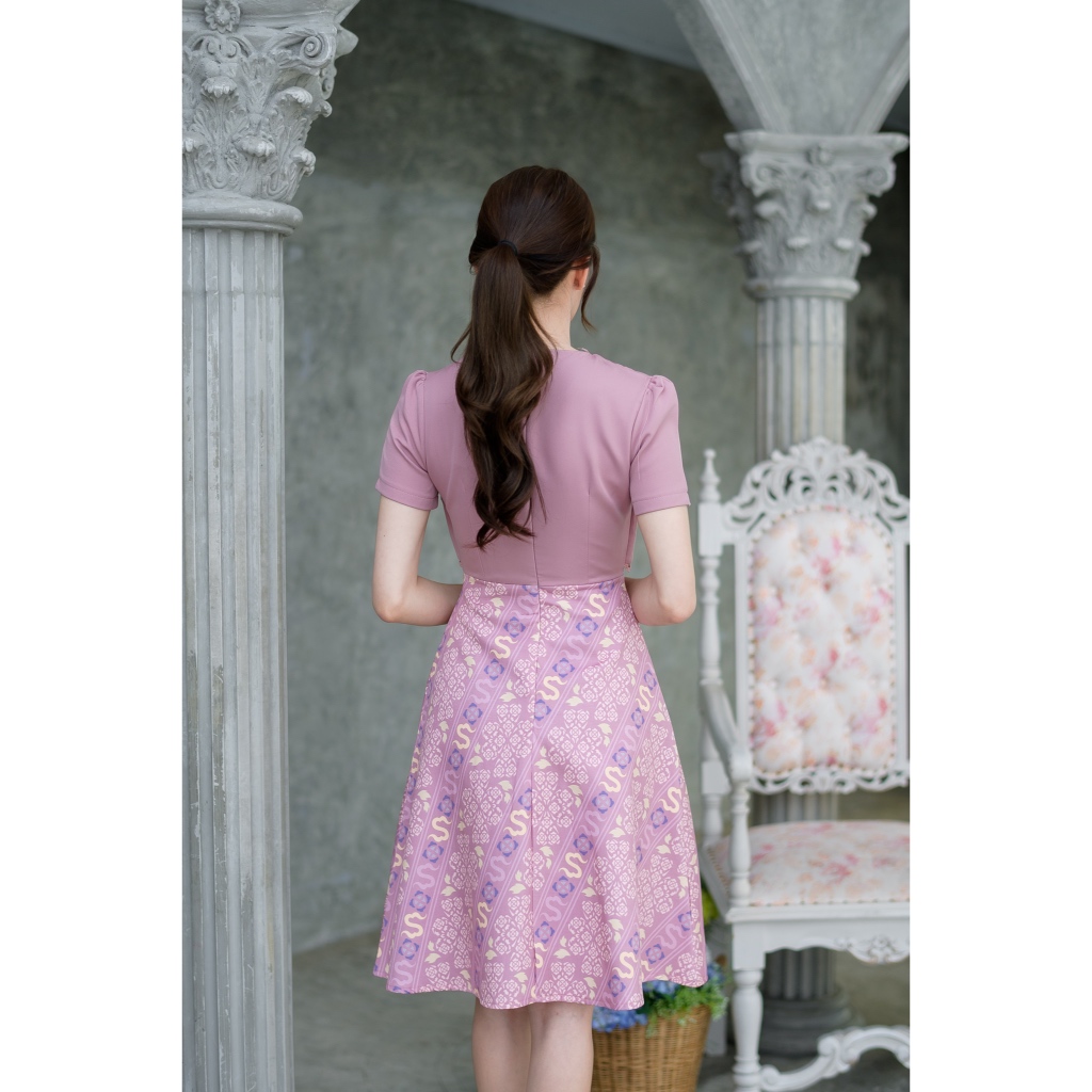 Zc88 Thai Pattern Dress With Lace Trim Printed With Siriraj Phattraphon Dress Woman
