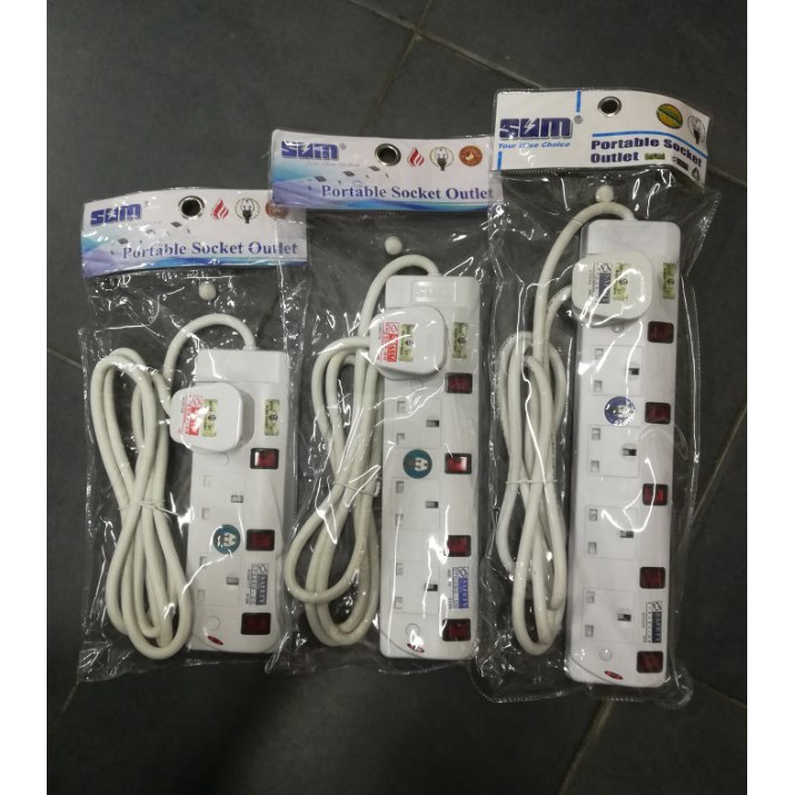 SUM H/DUTY 3 / 4 / 5 GANG TRAILING SOCKET / EXTENSION SOCKET - 2 METER