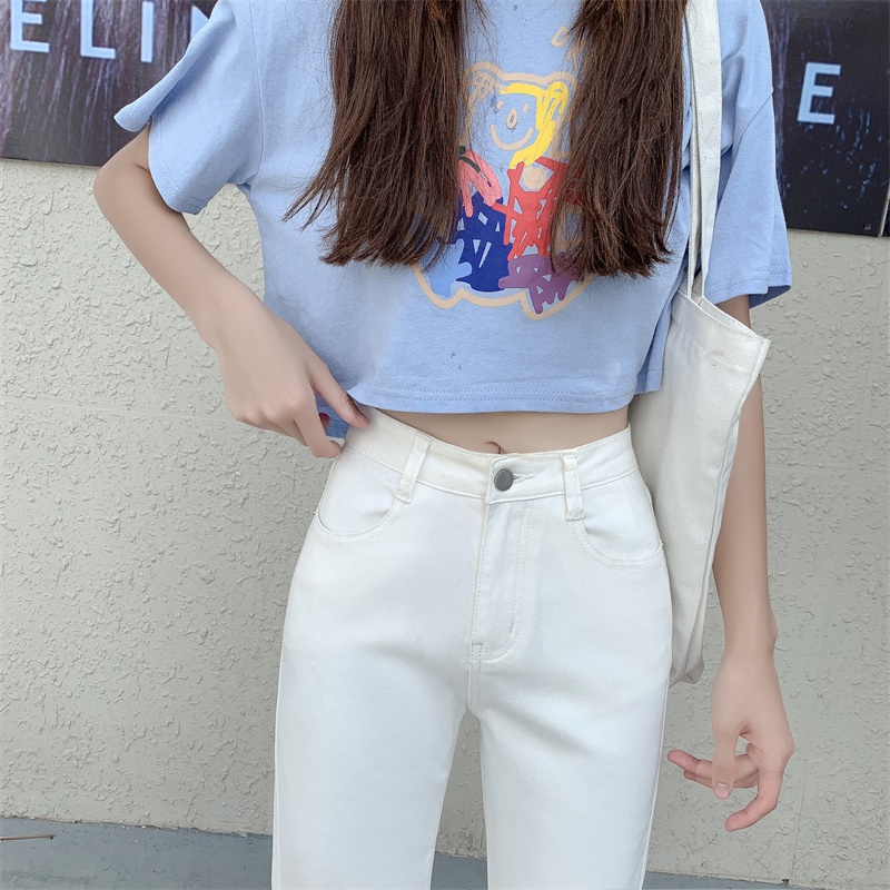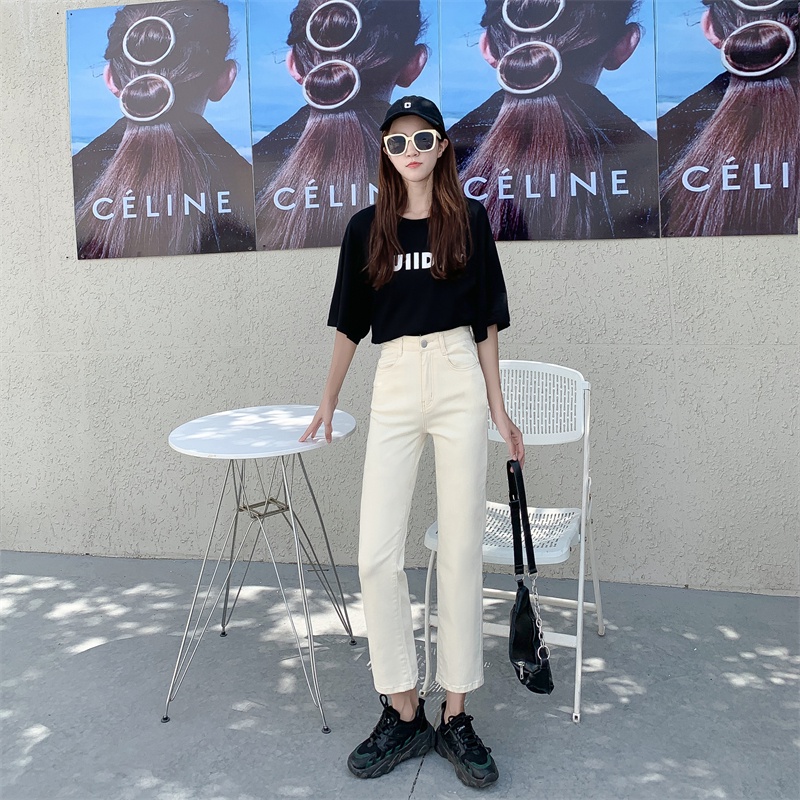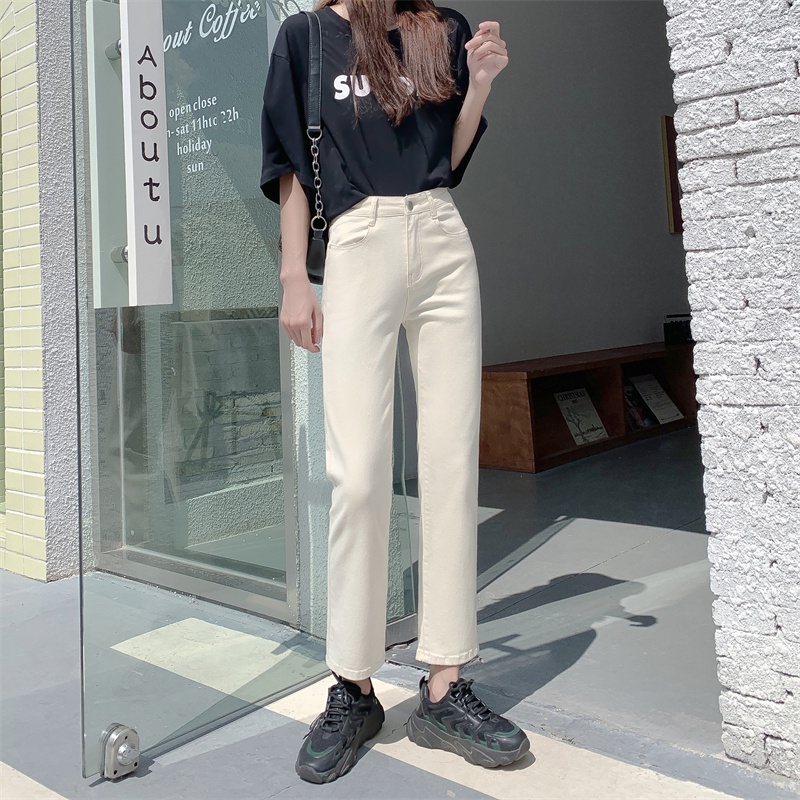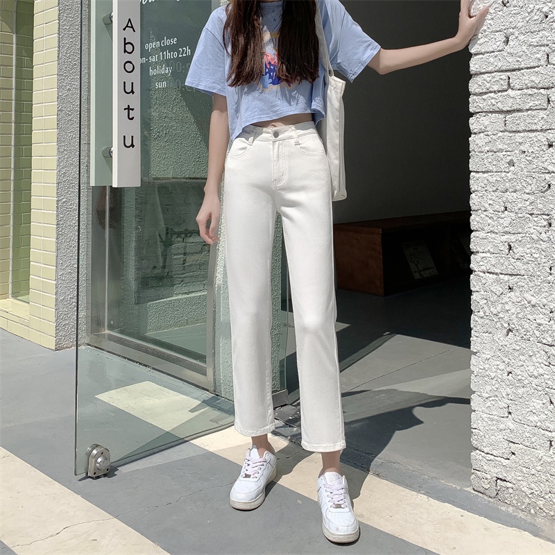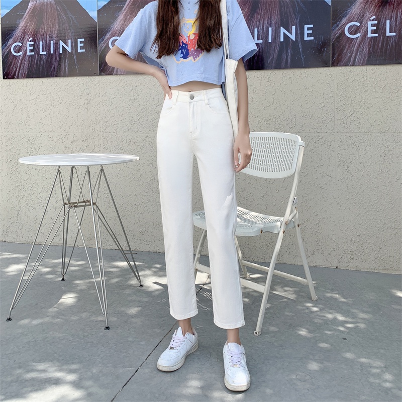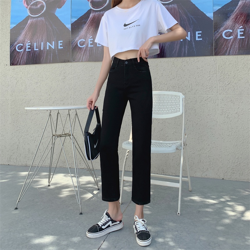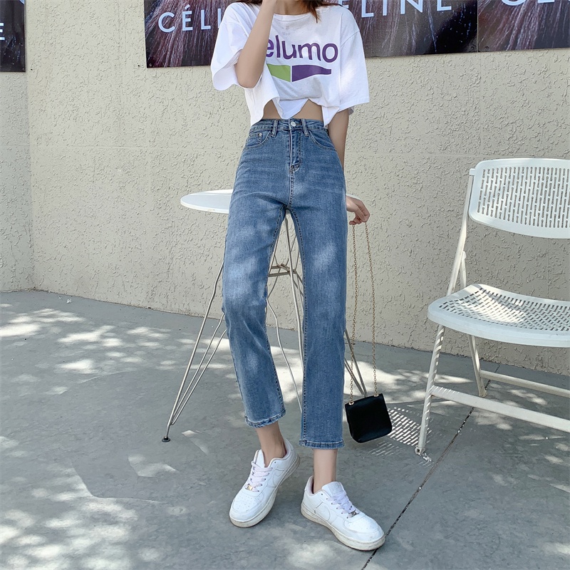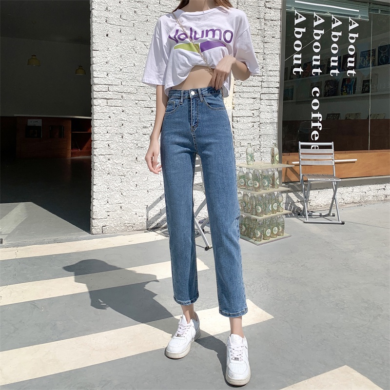 Ready Stock! Stretch Straight Jeans Women High Waist Plus Size Casual Loose