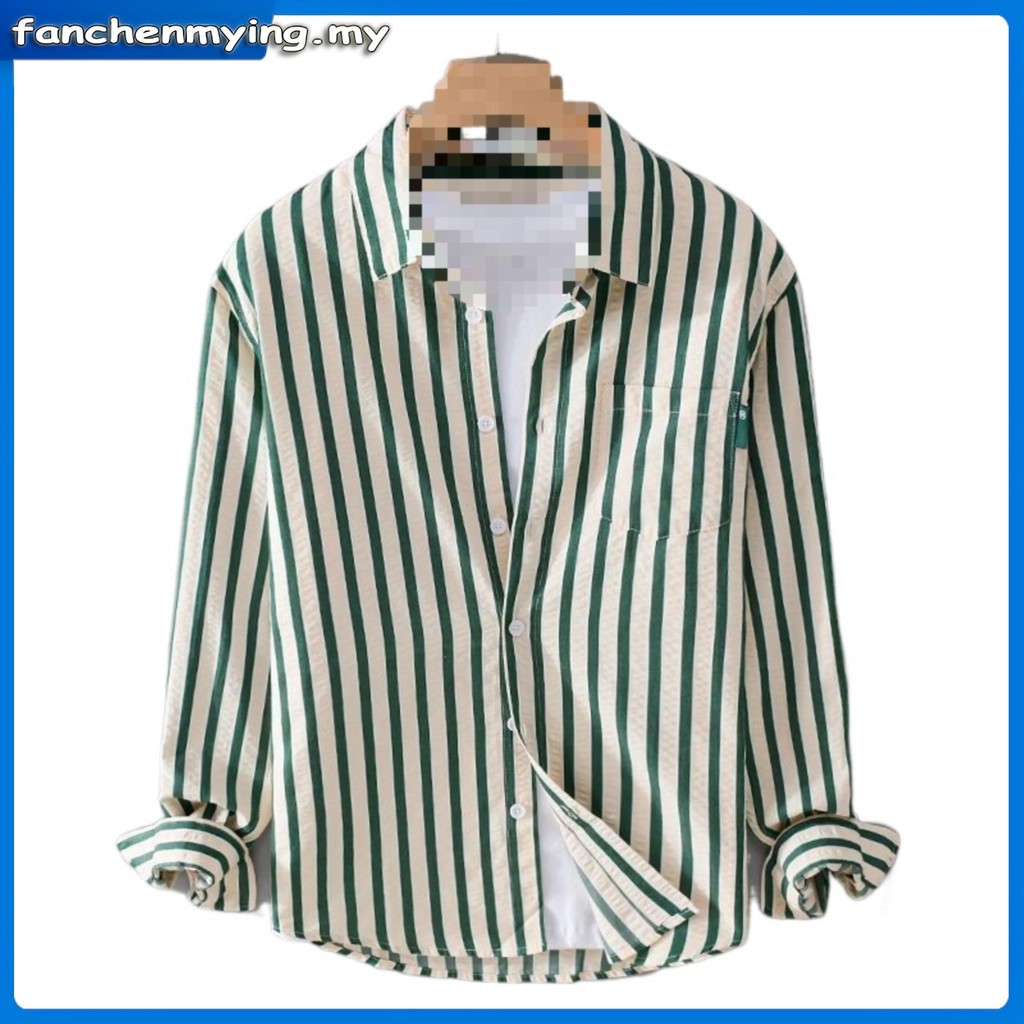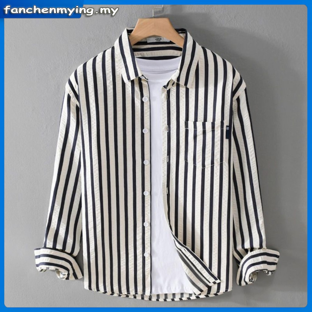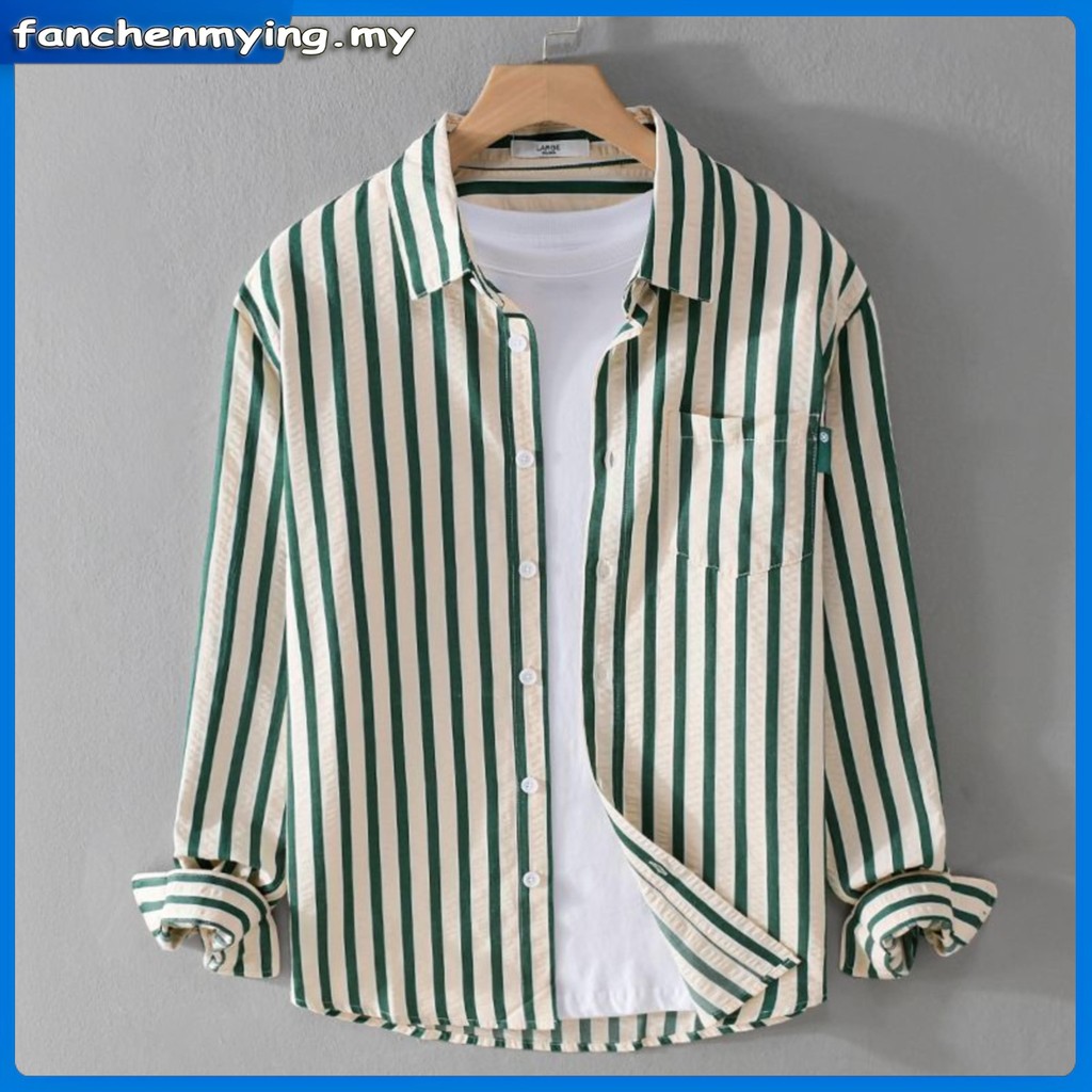 Good QualityStriped Long Sleeve Men Shirt Kemeja Lengan Panjang Lelaki Korean Fashion Shirt Oversize Baggy Shirt Cotton Luxury Stripe Shirts
