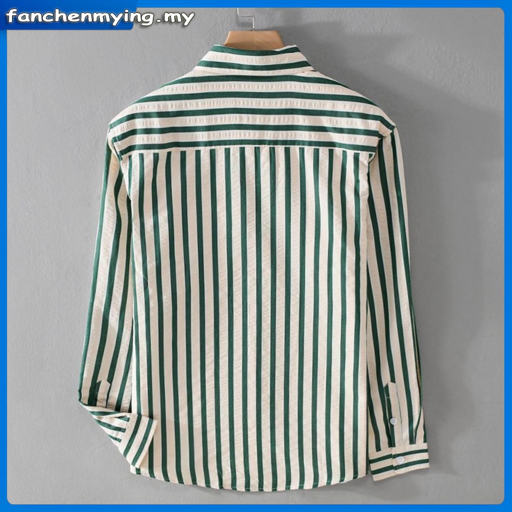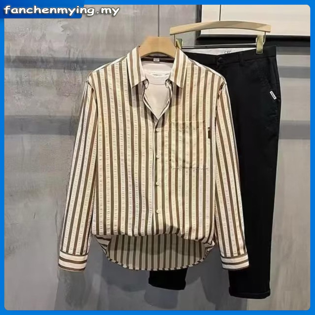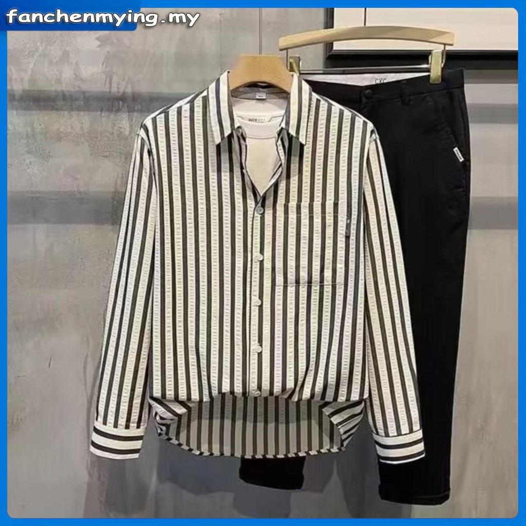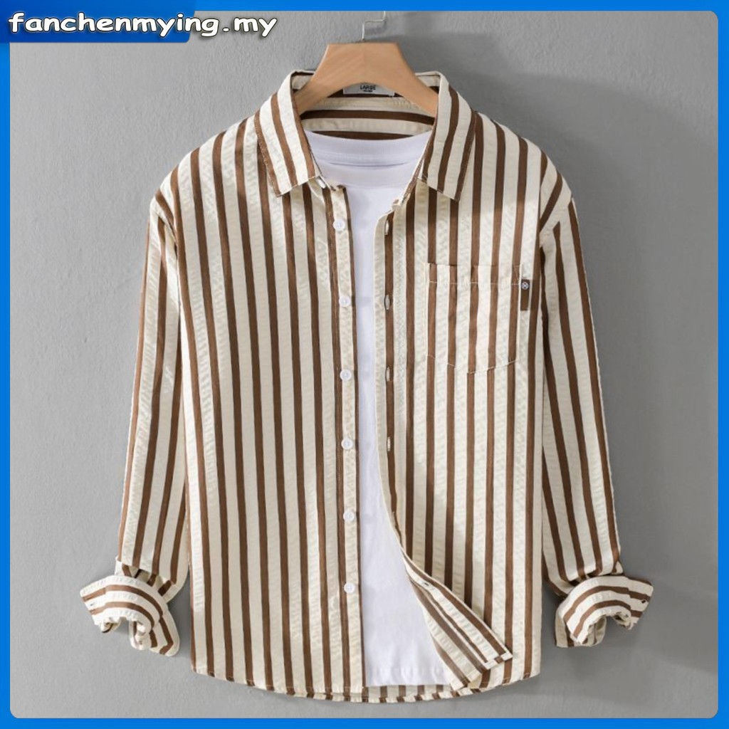 Good QualityStriped Long Sleeve Men Shirt Kemeja Lengan Panjang Lelaki Korean Fashion Shirt Oversize Baggy Shirt Cotton Luxury Stripe Shirts