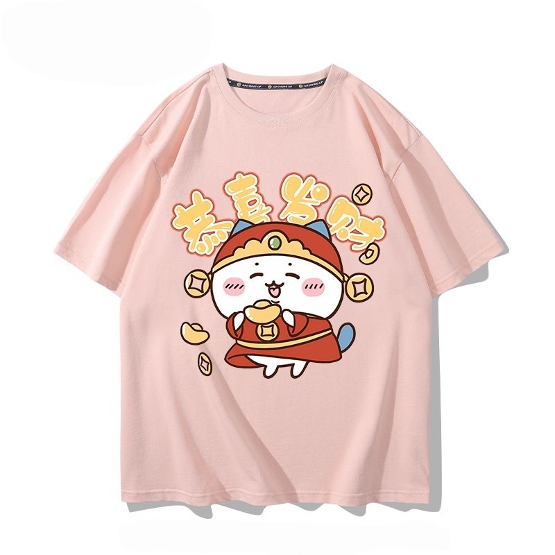 ACE BEAUTY Brand New Happy New Year Cotton Unisex T-shirt Joint Jiyikawa Printing Men and Women Loose Tops