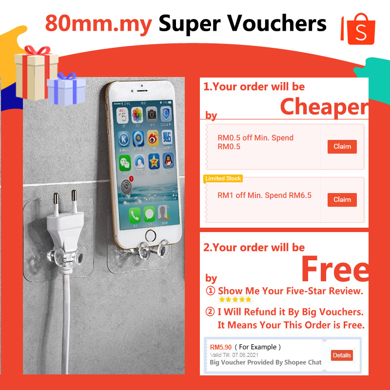 Transparent Plug Wall Mount Bracket Kitchen Wall Strong Adhesive Hook Creative Socket Hook for Bathroom Accessories