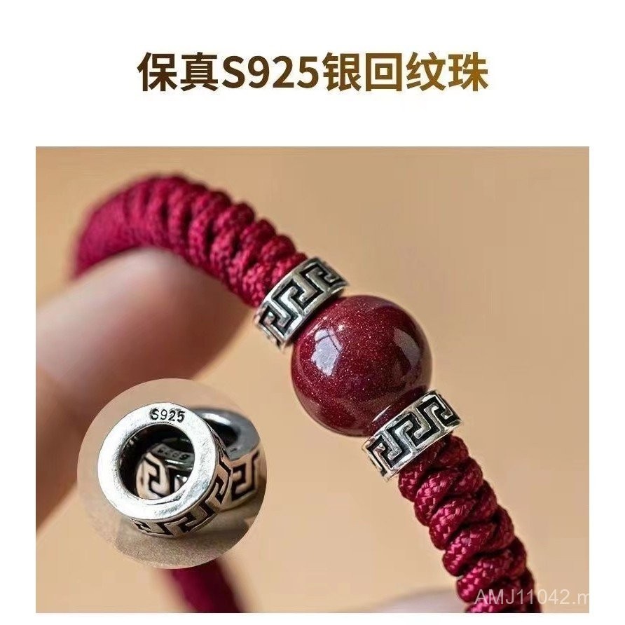 朱砂 手串 Cinnabar bracelets本命年纯银转运朱砂手链手绳男款粗款红绳手工编织饰品朋友礼物11.13