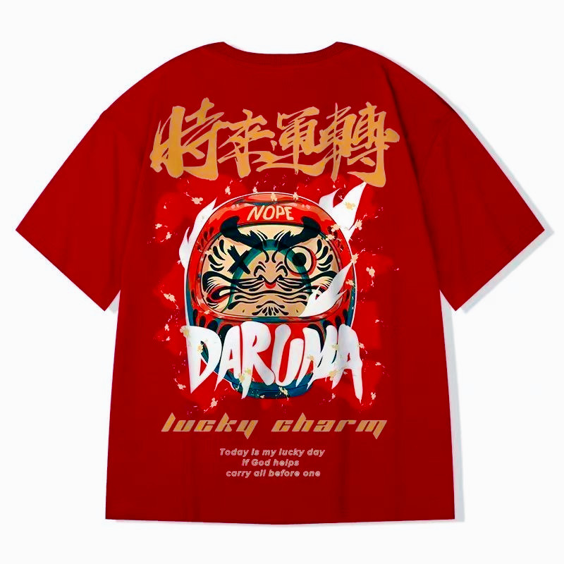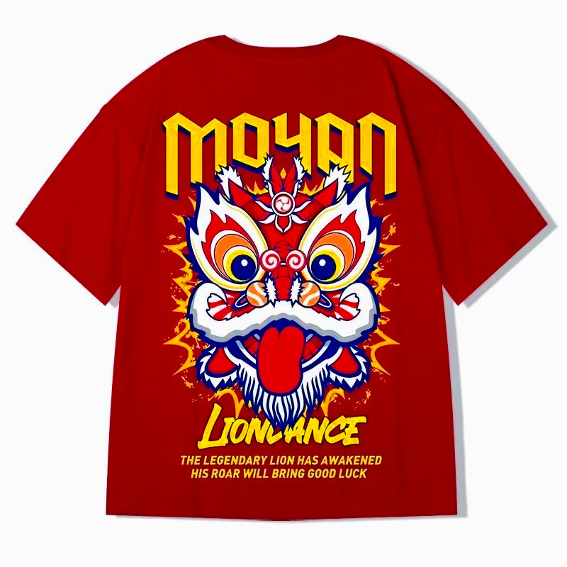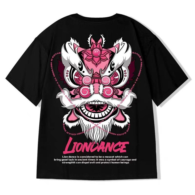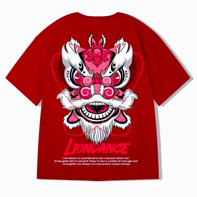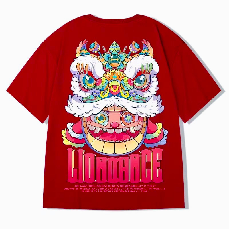 🔥100% PREMIUM COTTON🔥Round neck short sleeved cotton oversized lion dance Chinese style simple and fashionable shirt