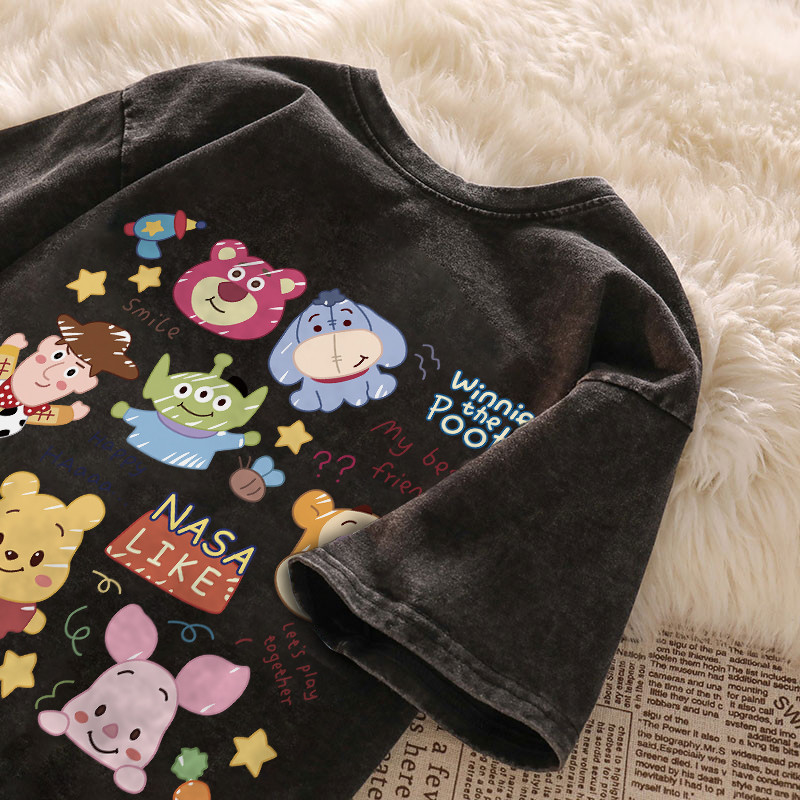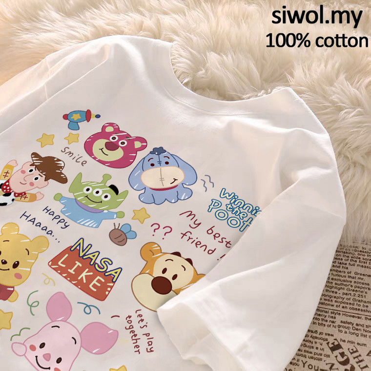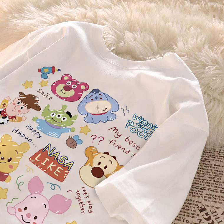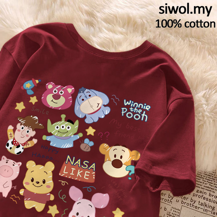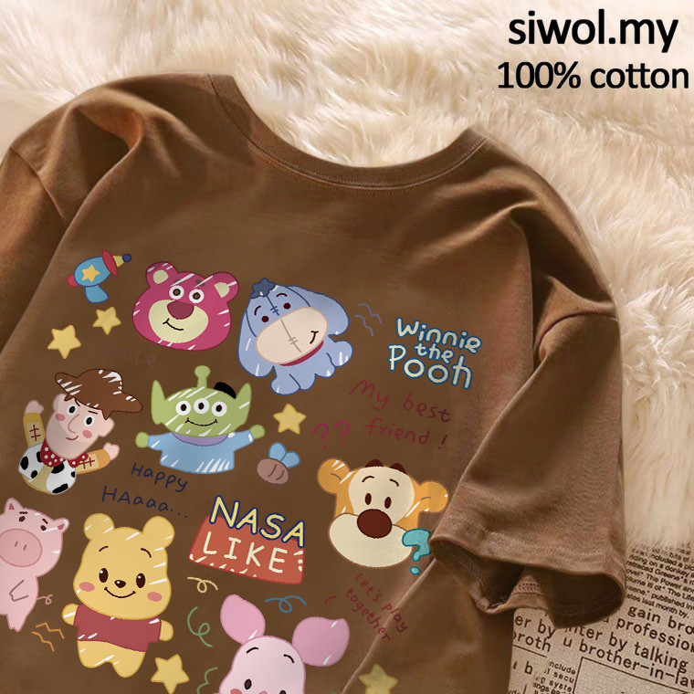 【siwol】Korean retro 100% cotton Cartoon Winnie the Pooh Print oversized T-shirt for women #I002348