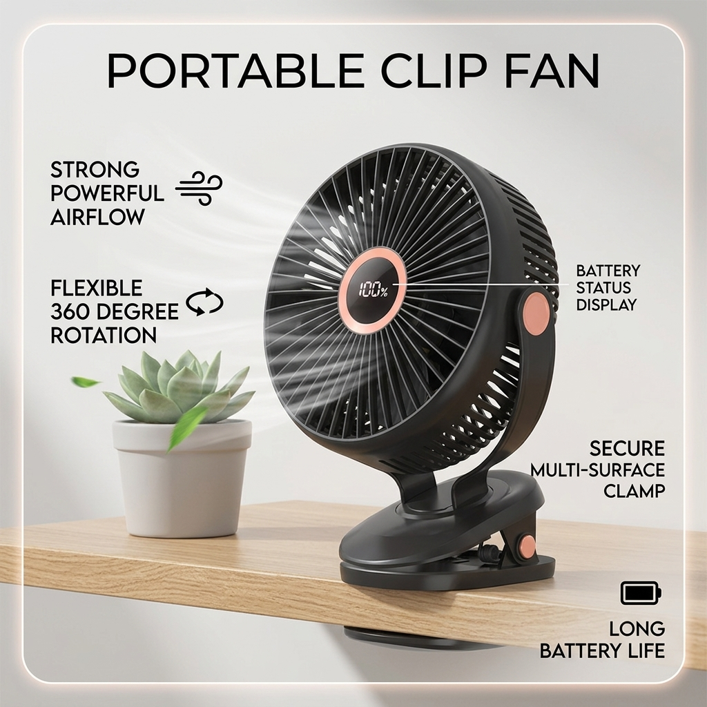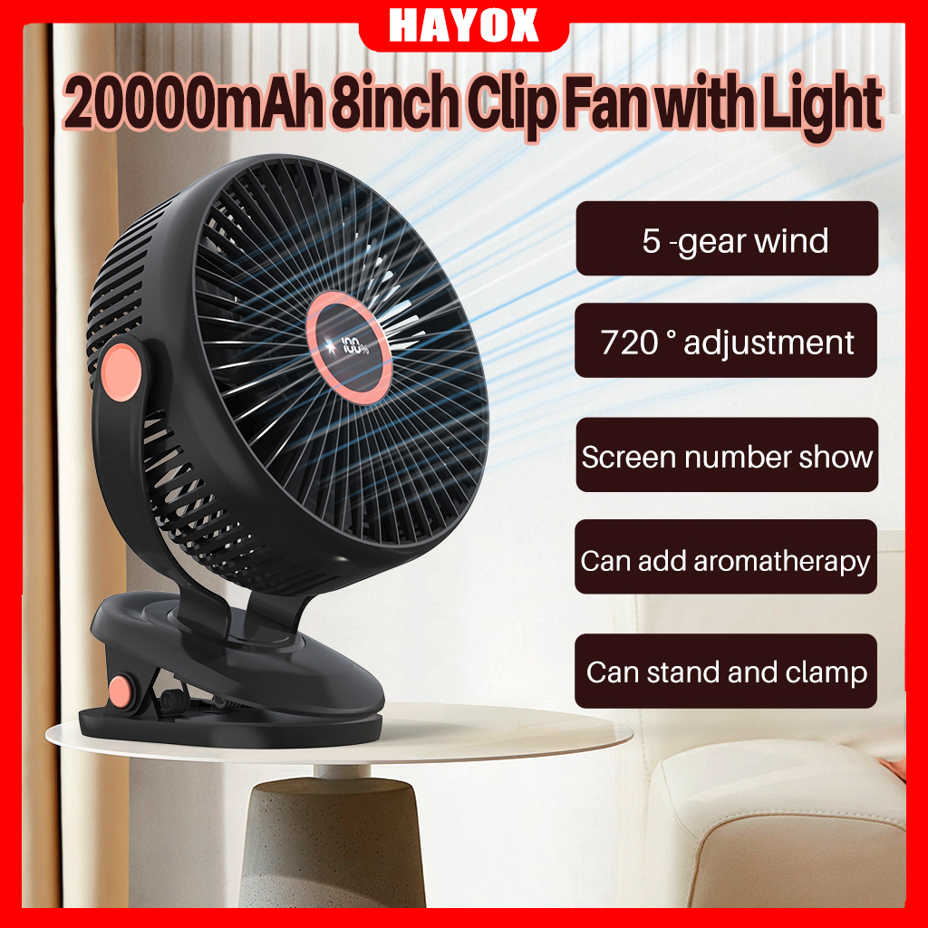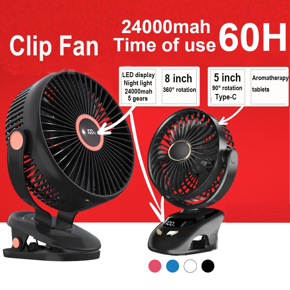 24000mAh Portable Rechargeable Clip Fan 8 inch Large Size Table Fan with Light 720° Rotation Strong Wind Cooling Fan 风扇
