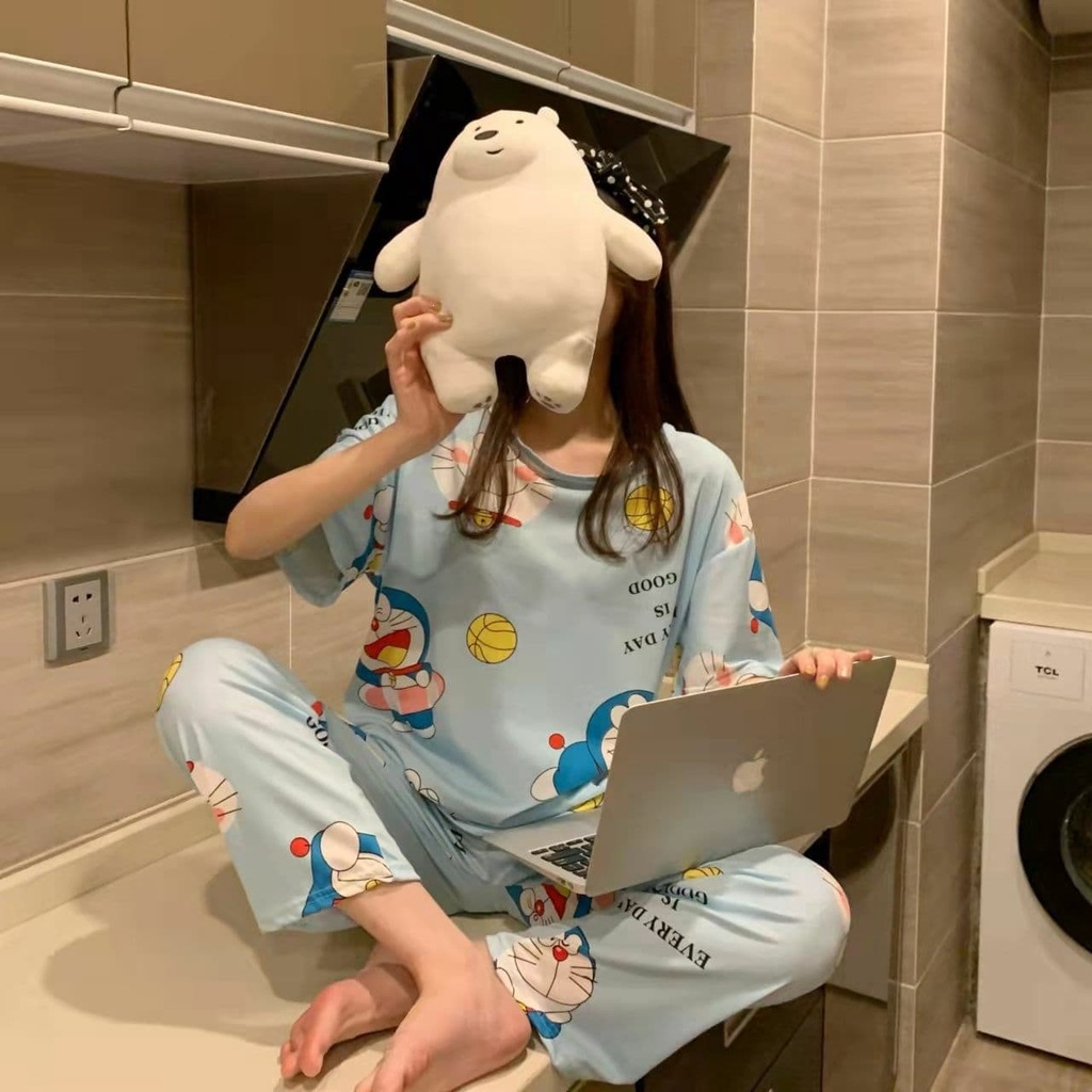 Ladies Pajamas Set Baju Tidur Perempuan Short Sleeve Pyjamas Present Birthday (SIZE M TO SIZE 2XL)