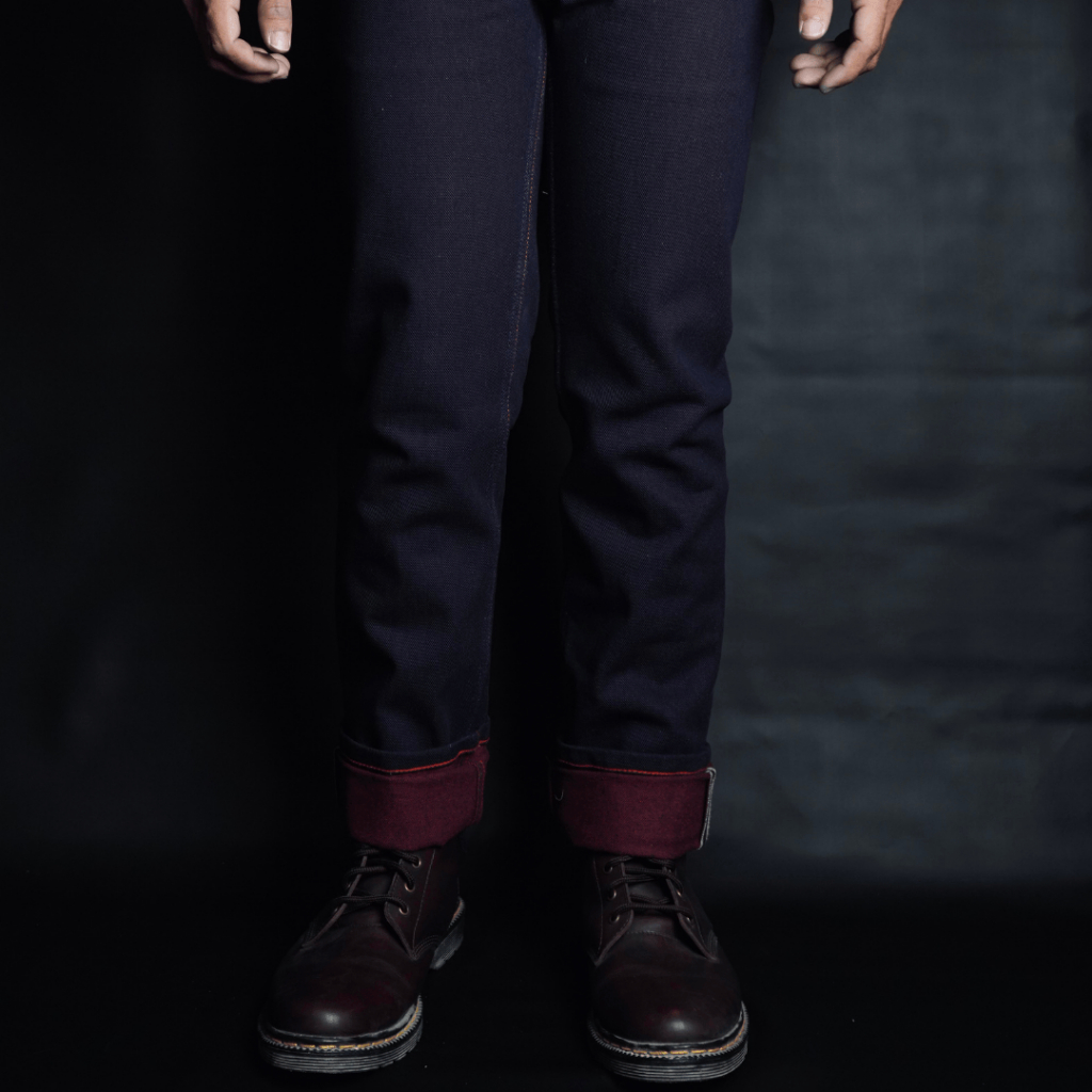 WORNDENIM Emberborn Series Indigo Xred Raw Denim 16 Oz Hidden Arcuate Buttonhole Sanforized SlimStraight Raw Denim Jeans Seluar Jeans Lelaki